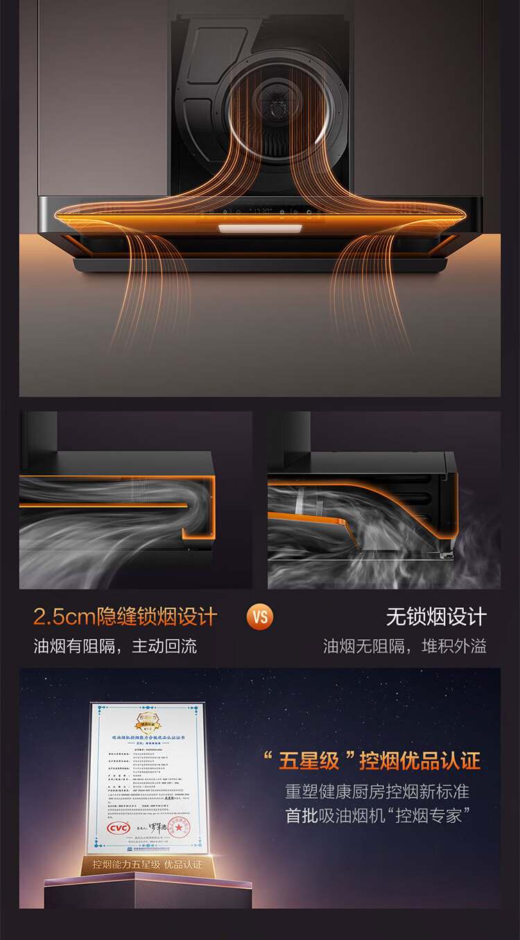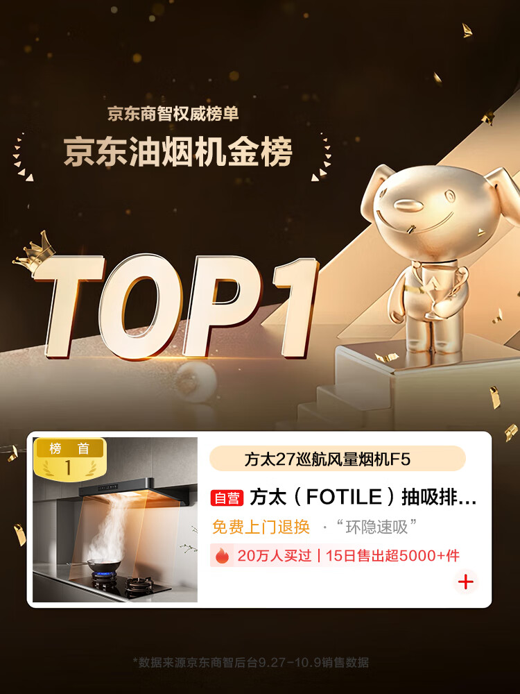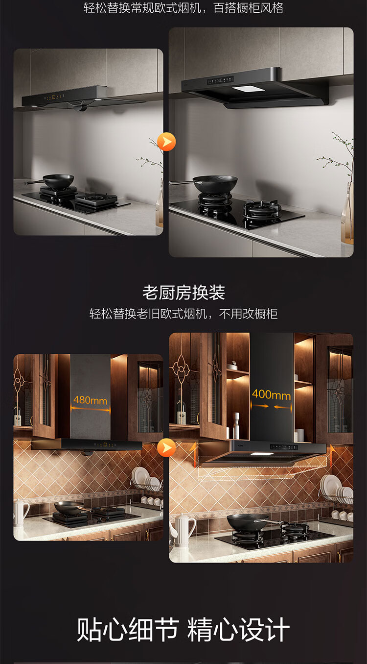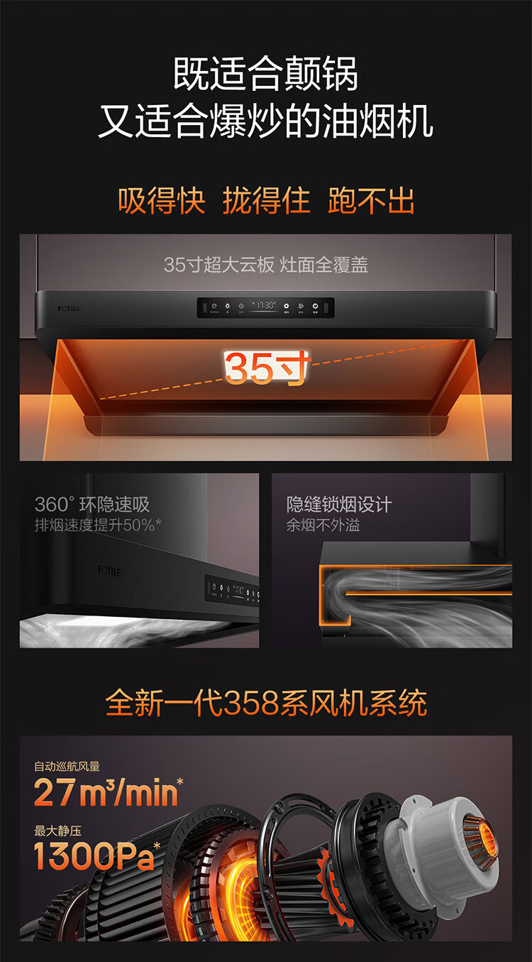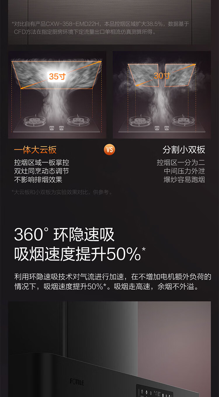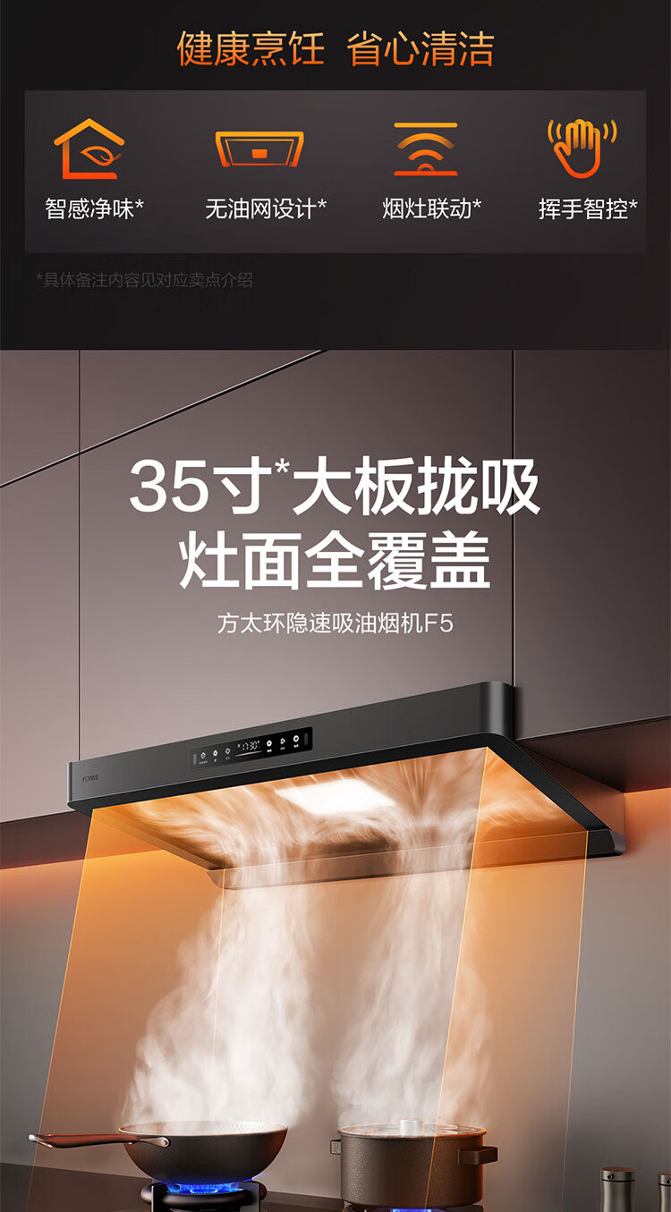 FOTILE F5 Slim European Top Suction 27 Air Volume Intelligent Odor Purifier Recommended Stove 03-TEK20 Extraction Range Hood Home Kitchen Trade-In