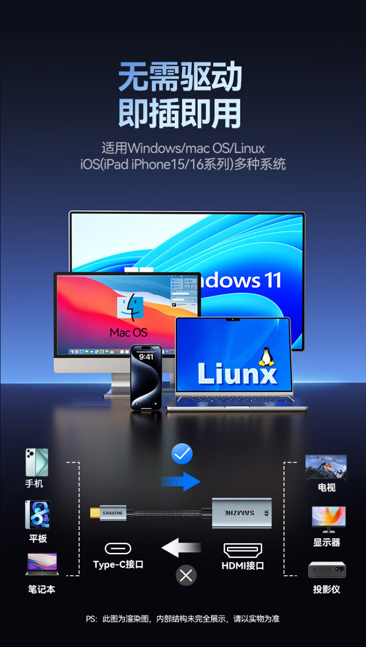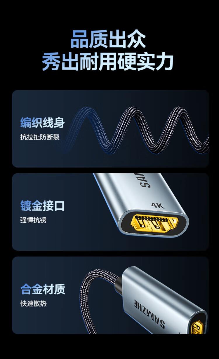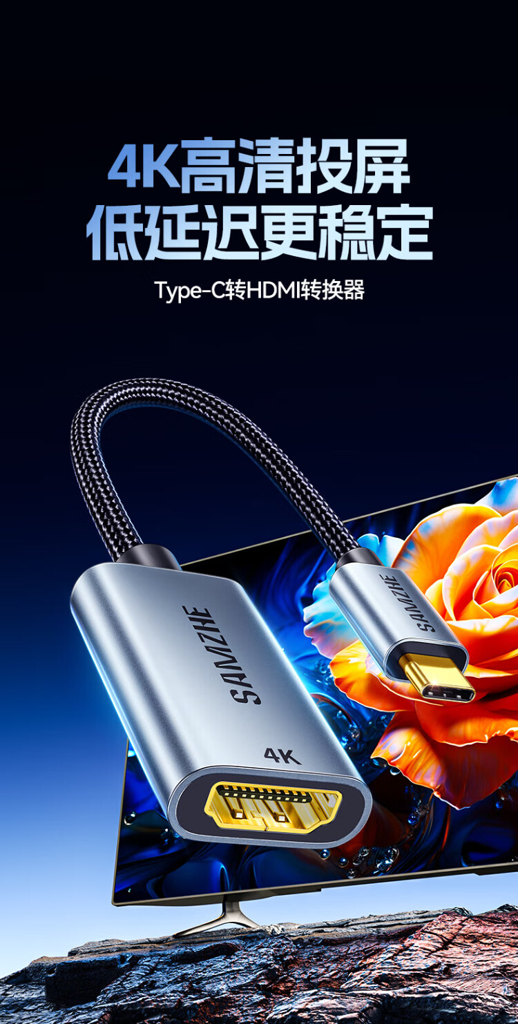 Shanze Type-C to HDMI female adapter Thunderbolt 4/5 line converter USB-C HD 4K60/2K144Hz screen projection suitable for mobile phones MacBook/iPad Air notebooks