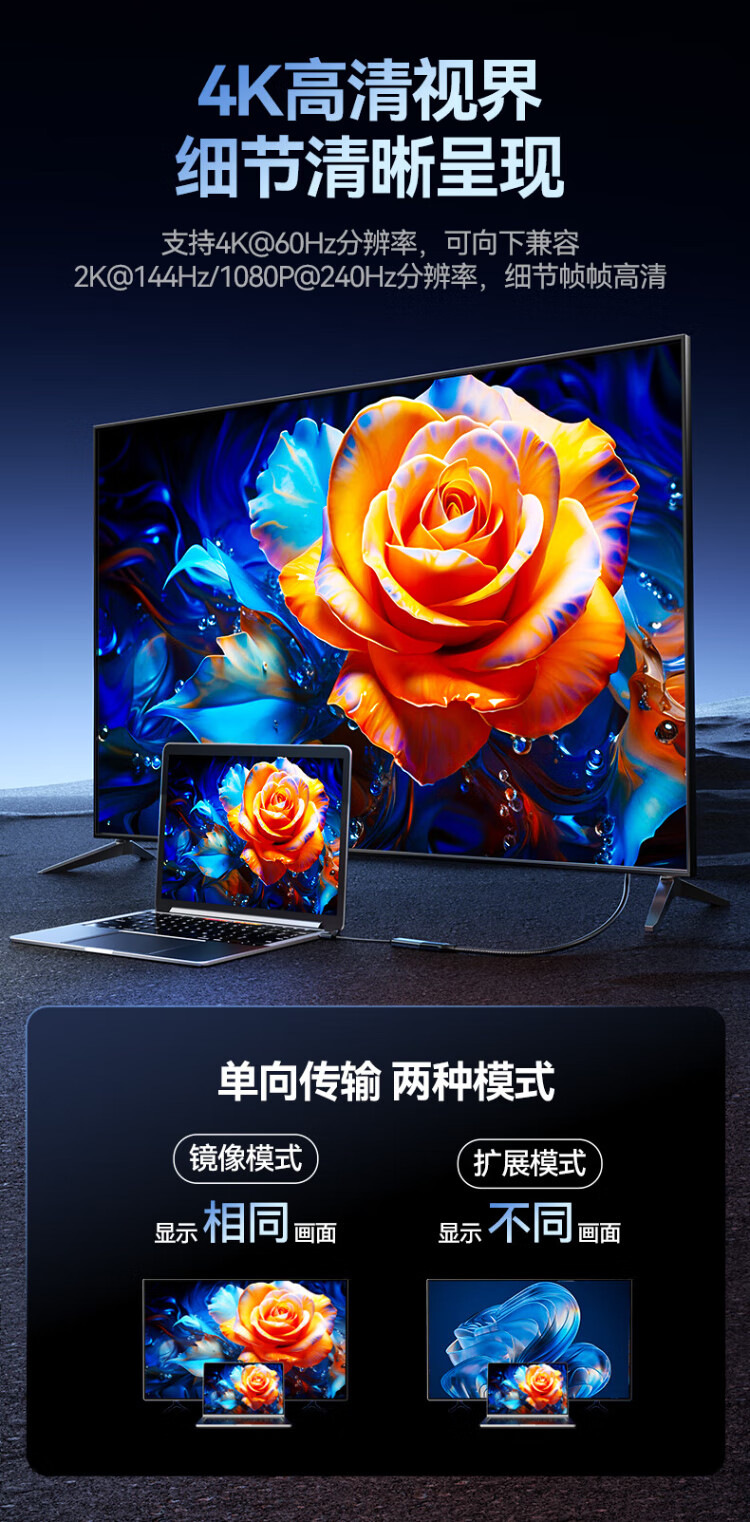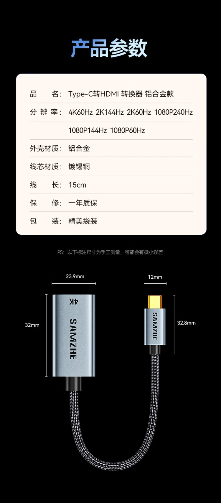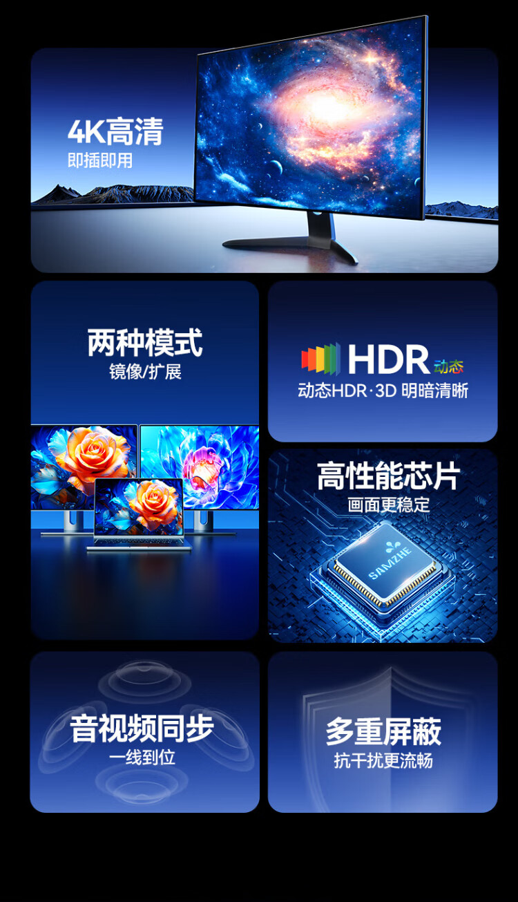 Shanze Type-C to HDMI female adapter Thunderbolt 4/5 line converter USB-C HD 4K60/2K144Hz screen projection suitable for mobile phones MacBook/iPad Air notebooks