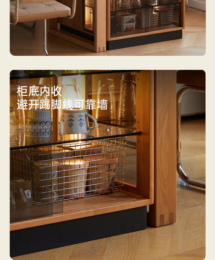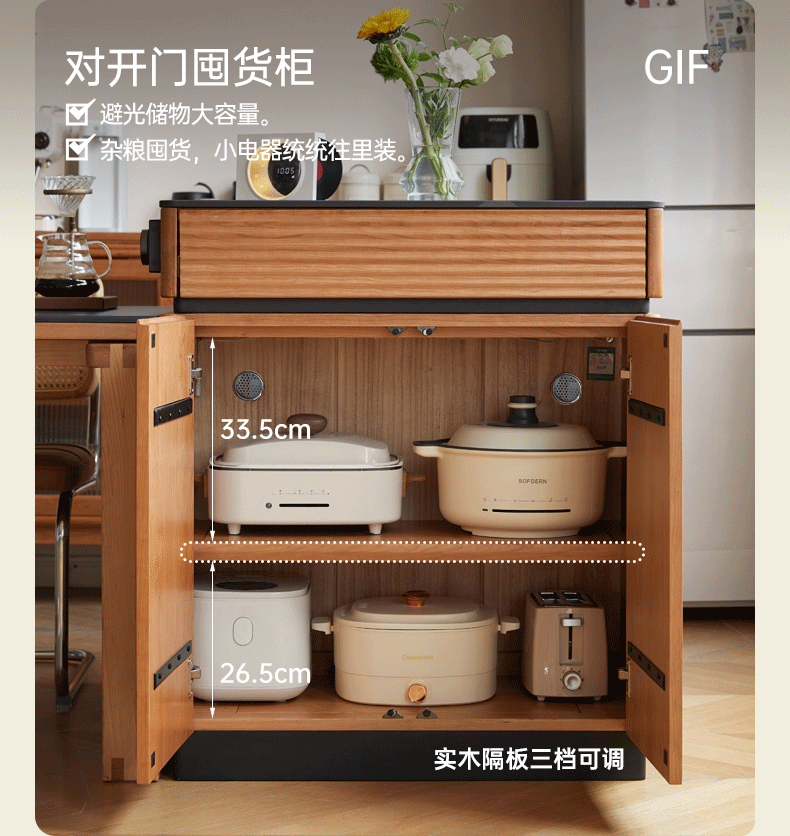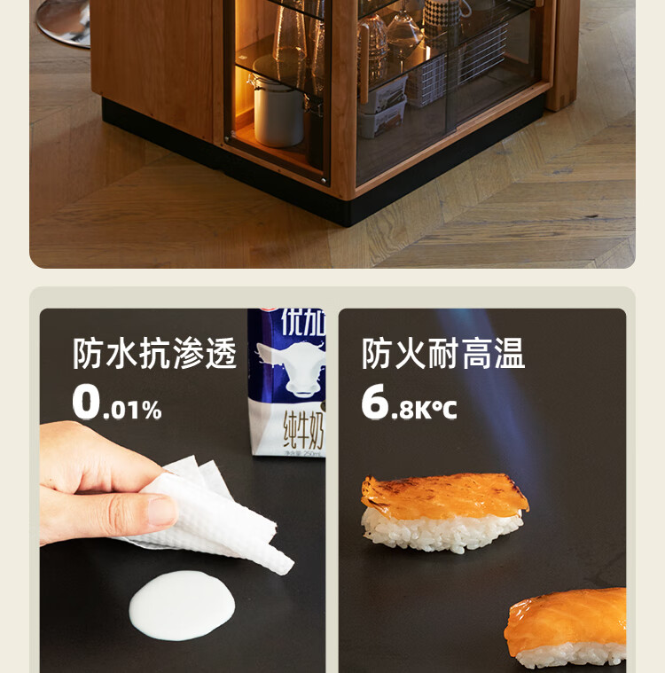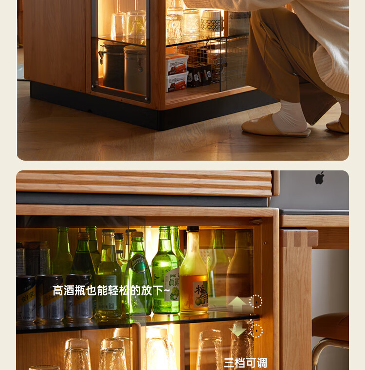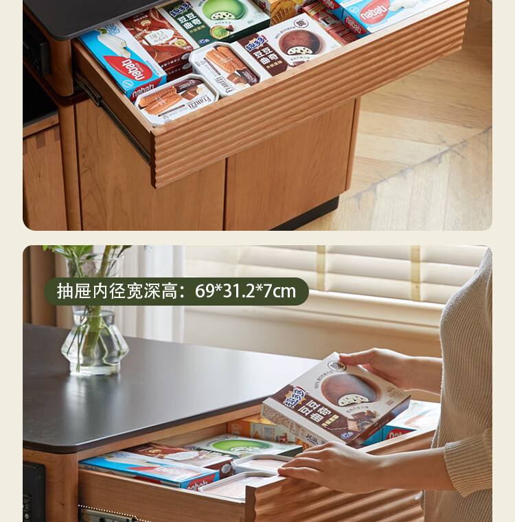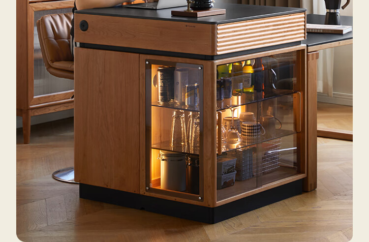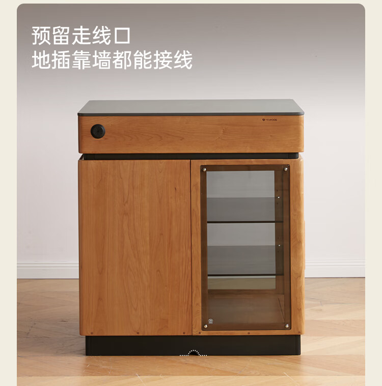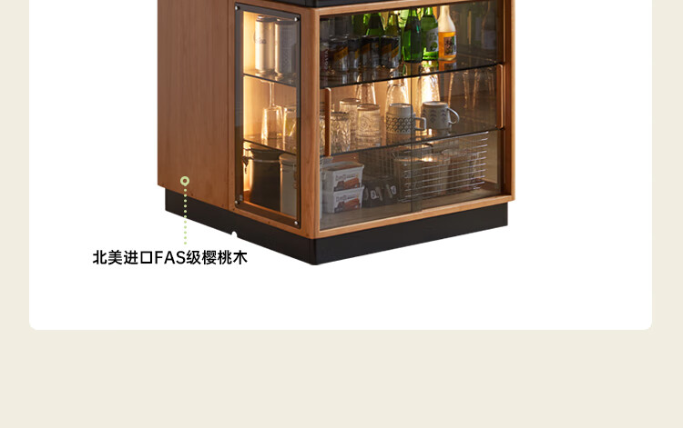 Genji Muyu solid wood dining table multi-functional bar table restaurant retro cherry wood side cabinet 0.8m pure black slate island