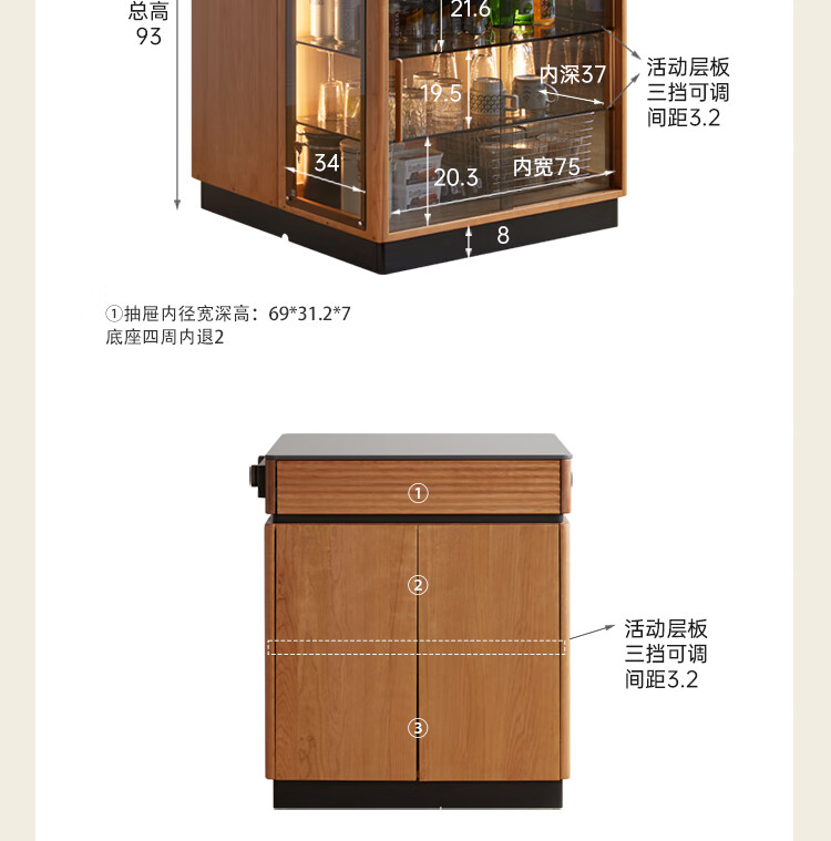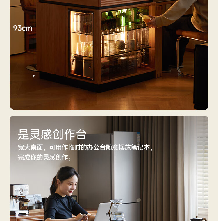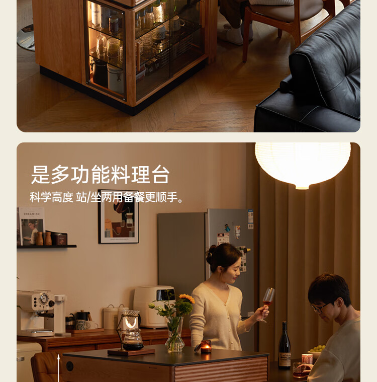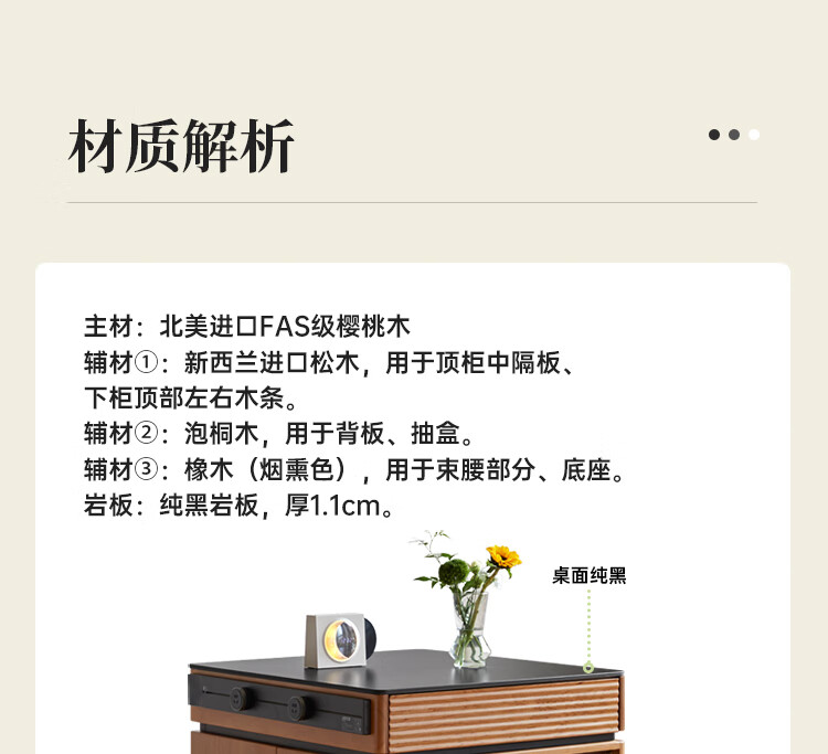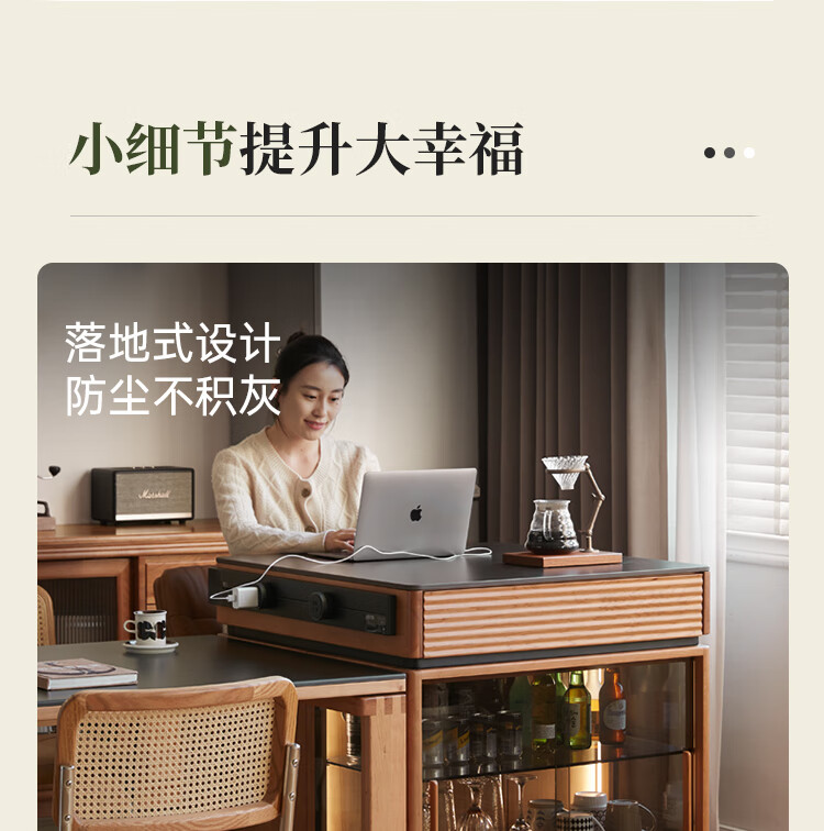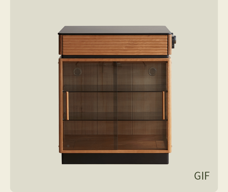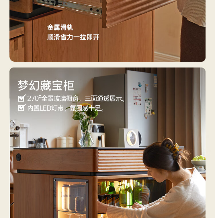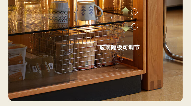 Genji Muyu solid wood dining table multi-functional bar table restaurant retro cherry wood side cabinet 0.8m pure black slate island