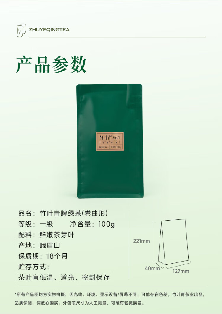 Bamboo Leaf Green 1964 Curly Green Tea Emeishan Grade One 100g Bag Stocking 2025 New Tea for Your Own Drink 16002