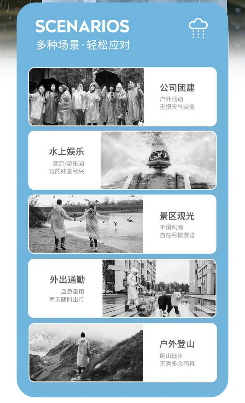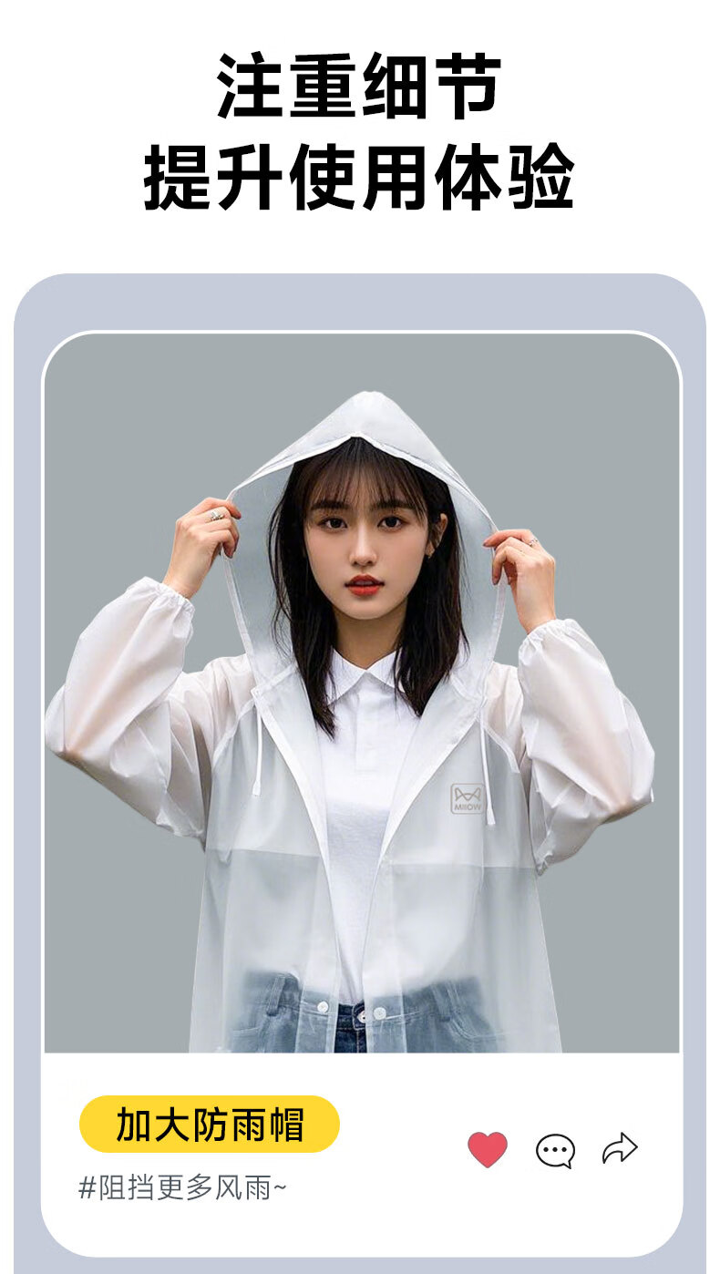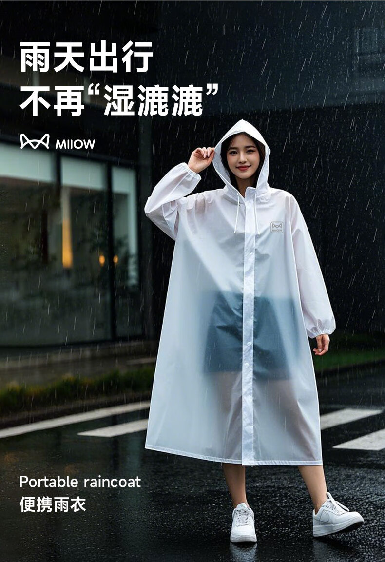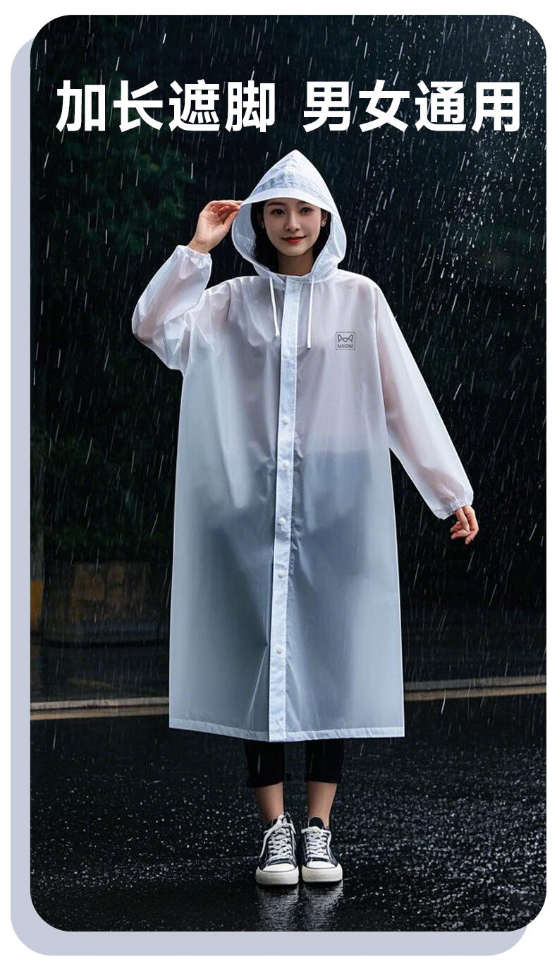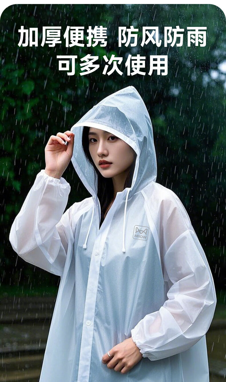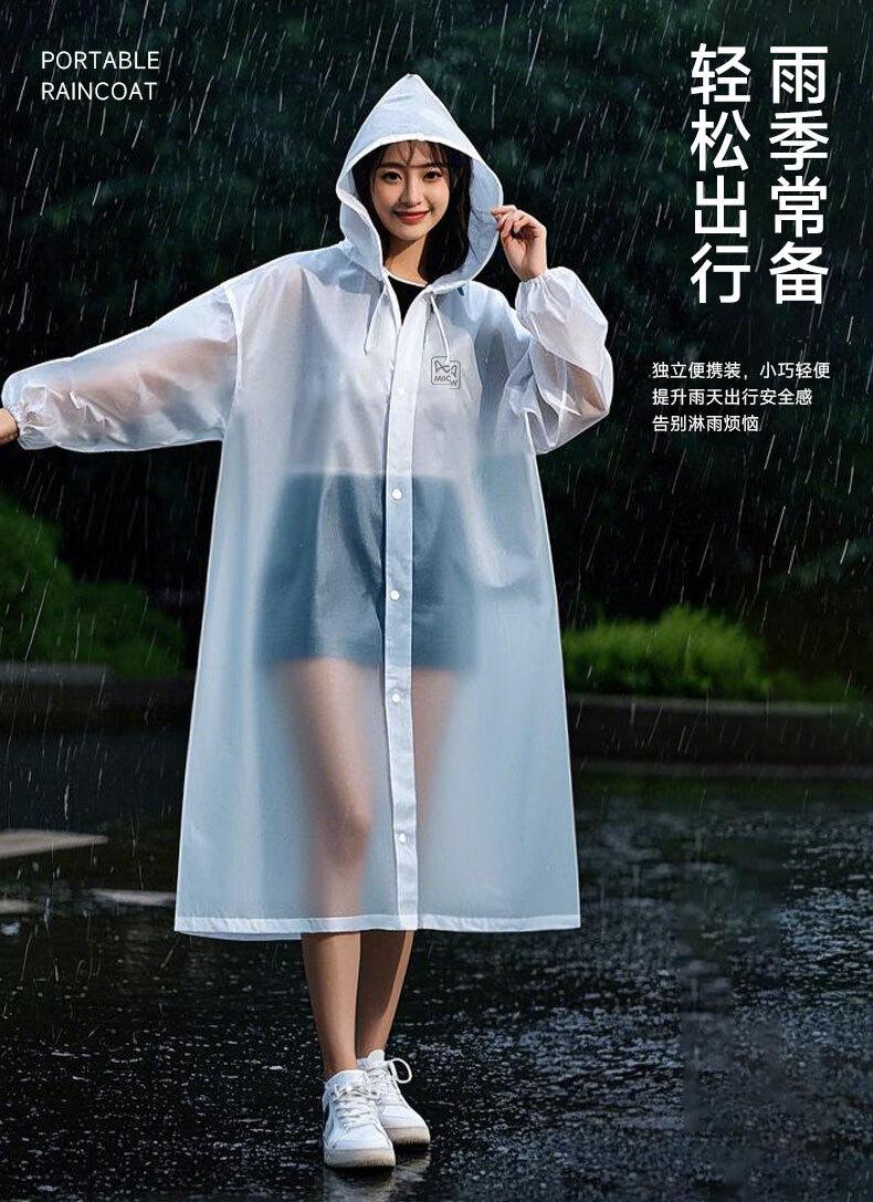 Catman Adult Portable Raincoat Thickened Frosted White Translucent PEVA Material Men's and Women's Raincoat Rain Cover