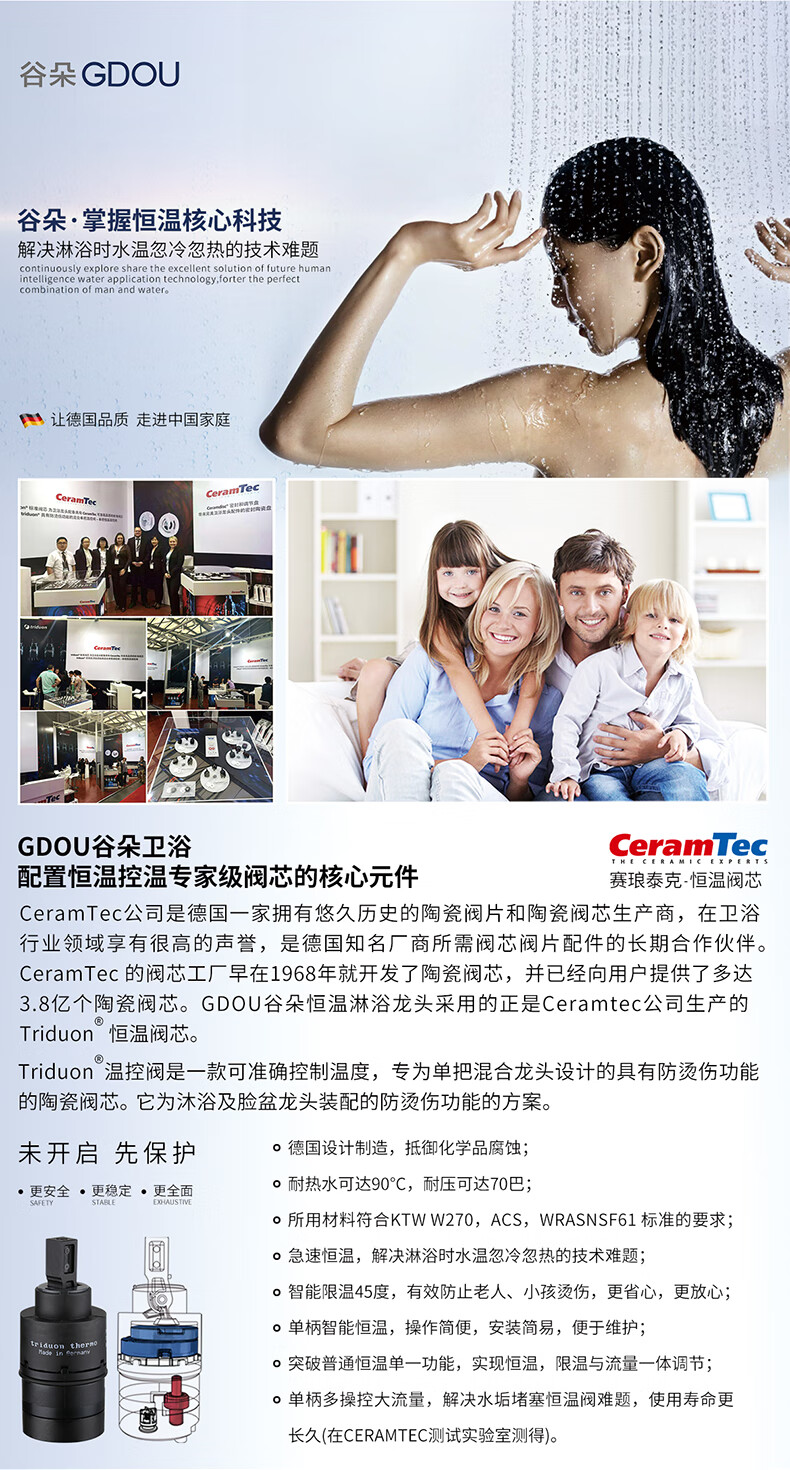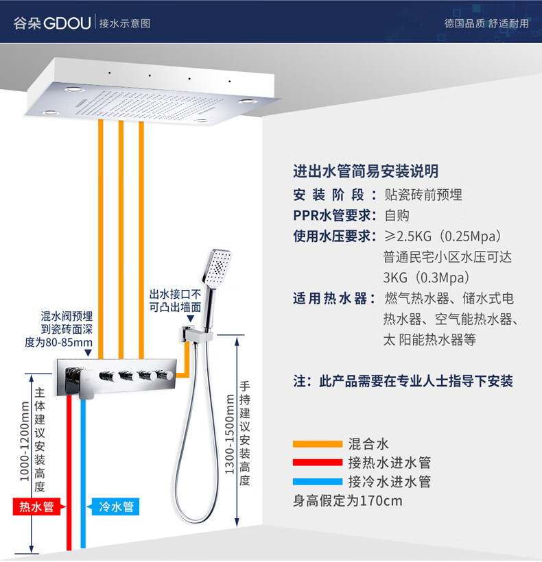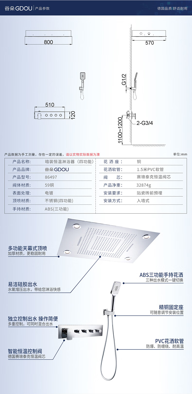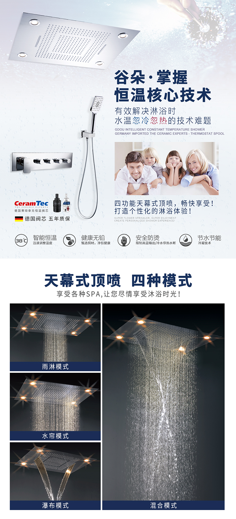 Guduo GDOU bathroom wall-mounted concealed shower rain waterfall multi-functional top spray constant temperature shower set 86497