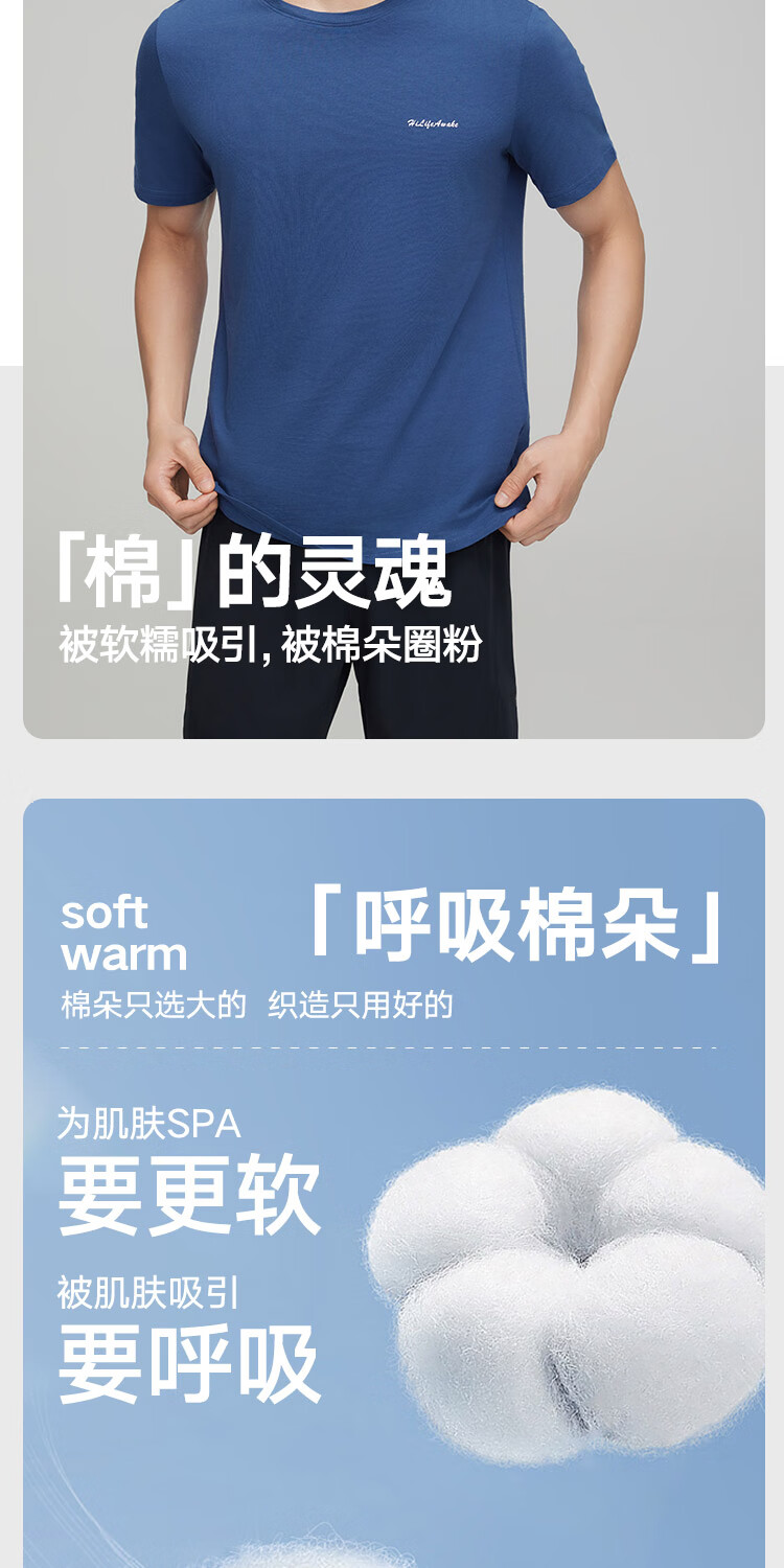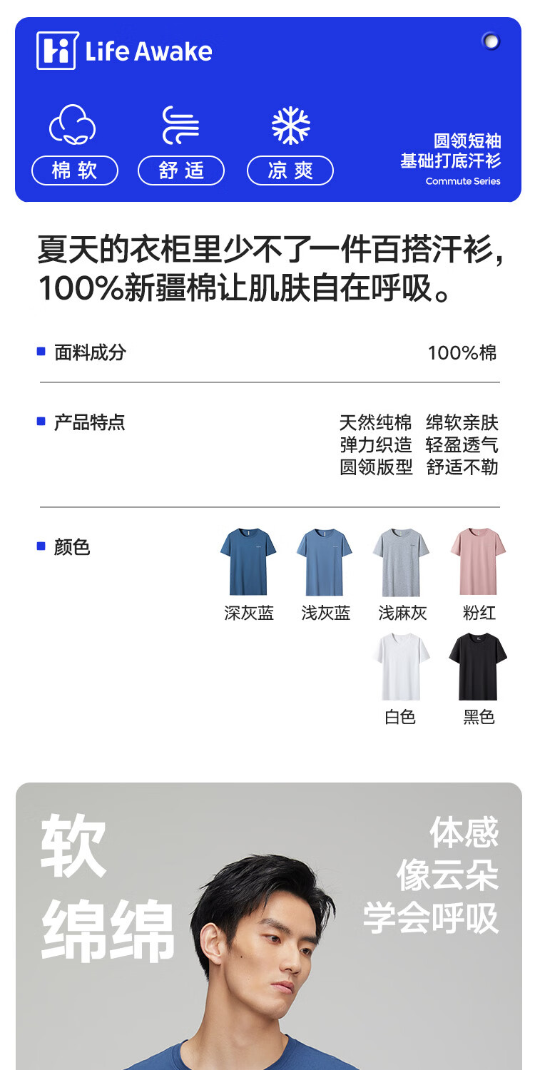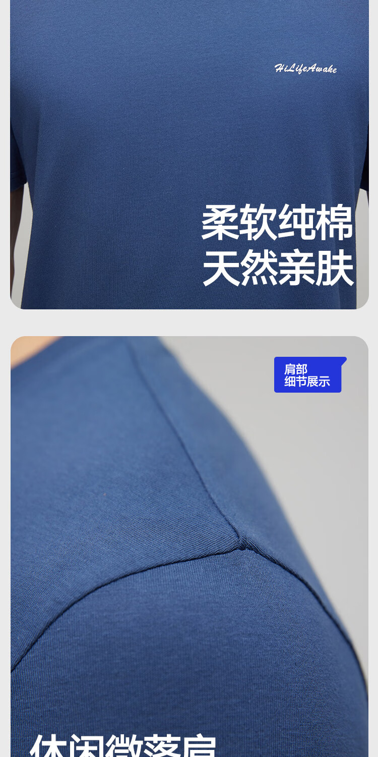 Heilan House men's short-sleeved undershirt men's round neck pure cotton 100% cotton comfortable breathable thin basic base layer 2-pack