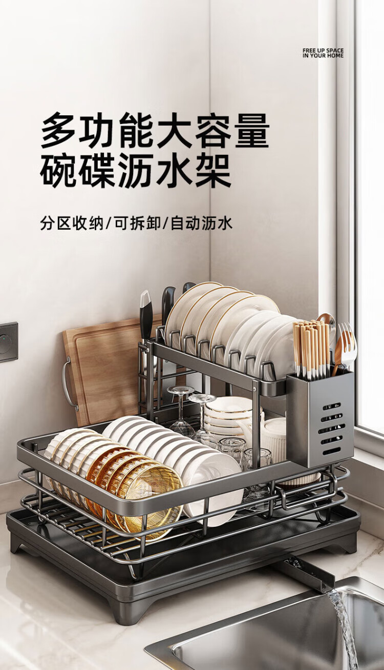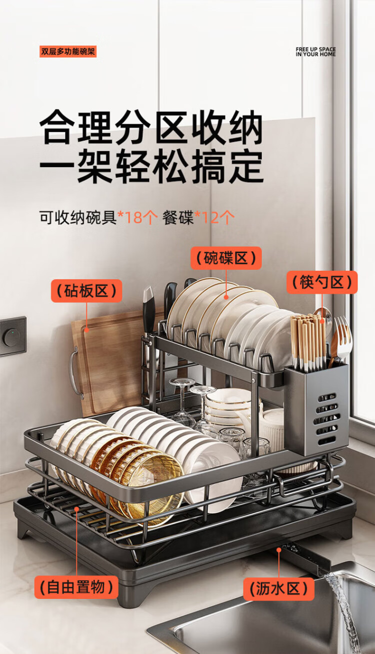 Home Easy Kitchen Multifunctional Storage Rack Dish Rack Draining Dishes Storage Box Chopstick Tube Storage Kitchen Utensils Collection