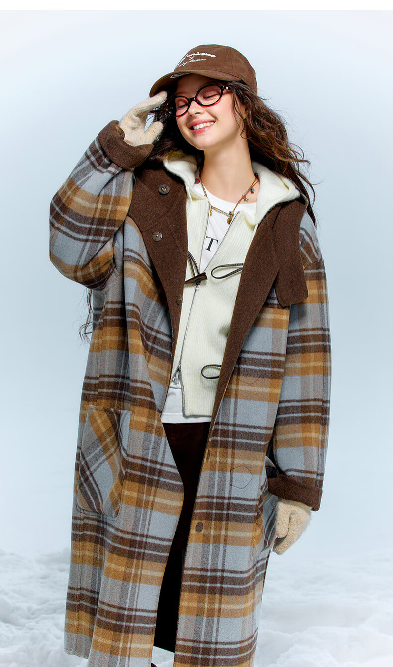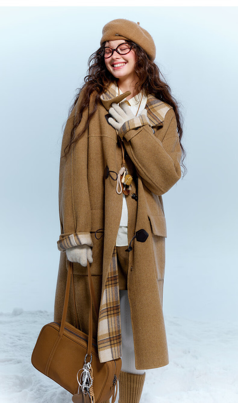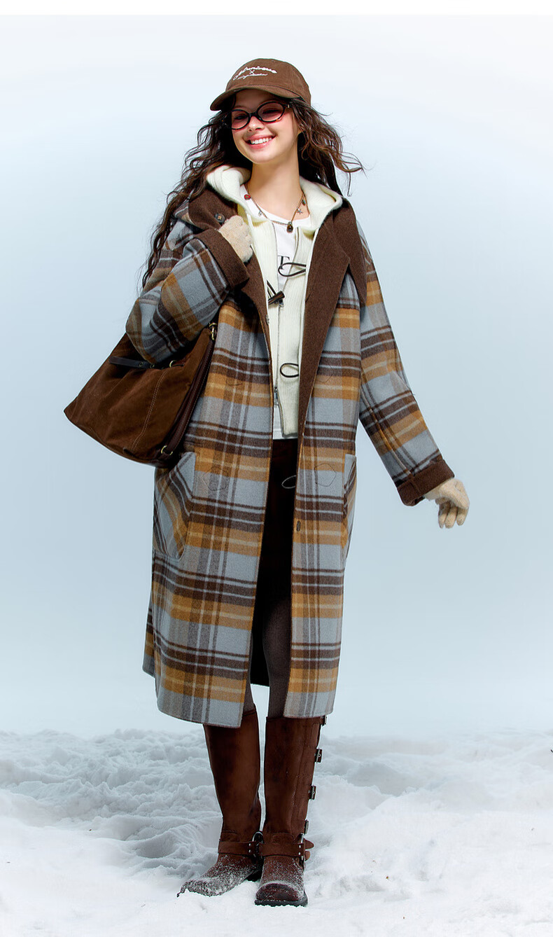 Sancai 2025 new winter style plaid double-sided woolen coat reversible woolen coat F