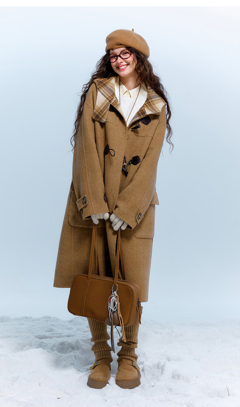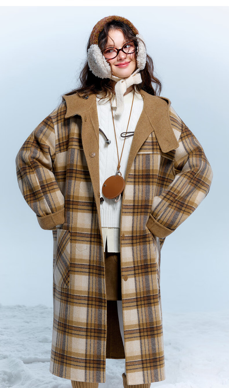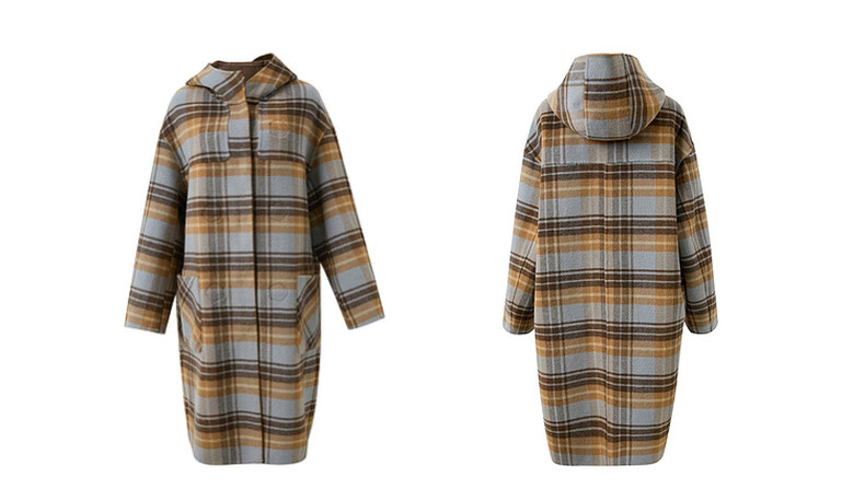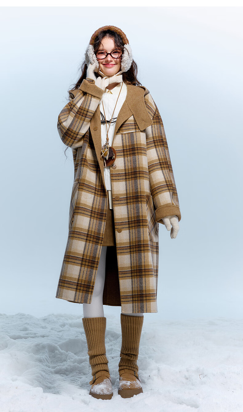 Sancai 2025 new winter style plaid double-sided woolen coat reversible woolen coat F