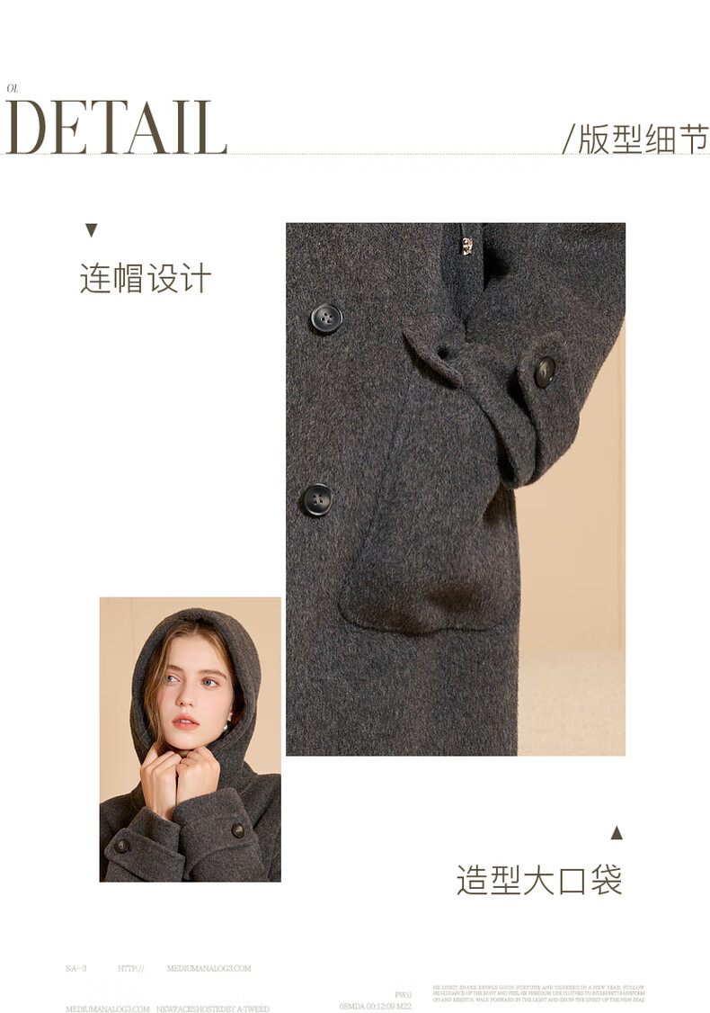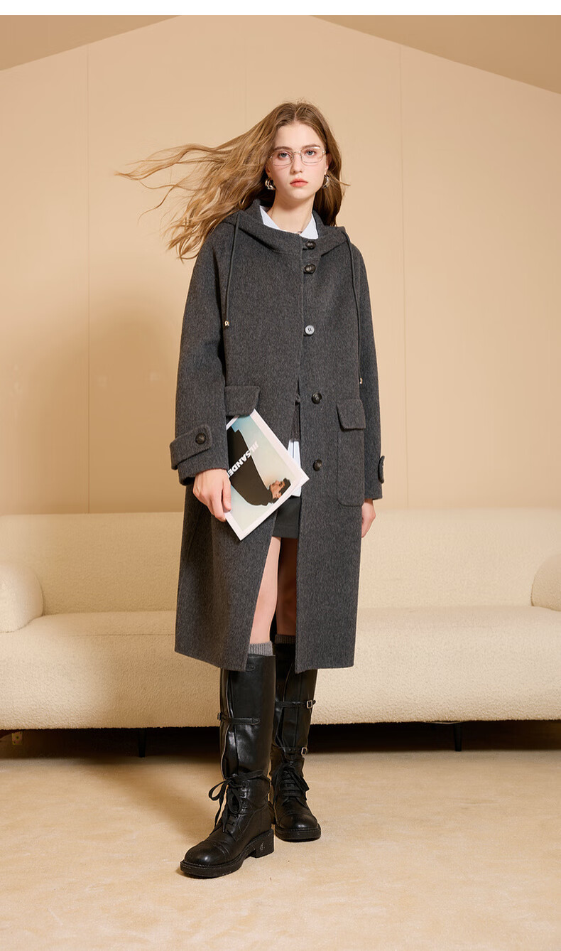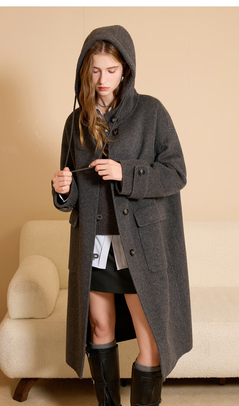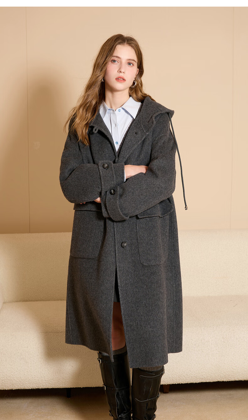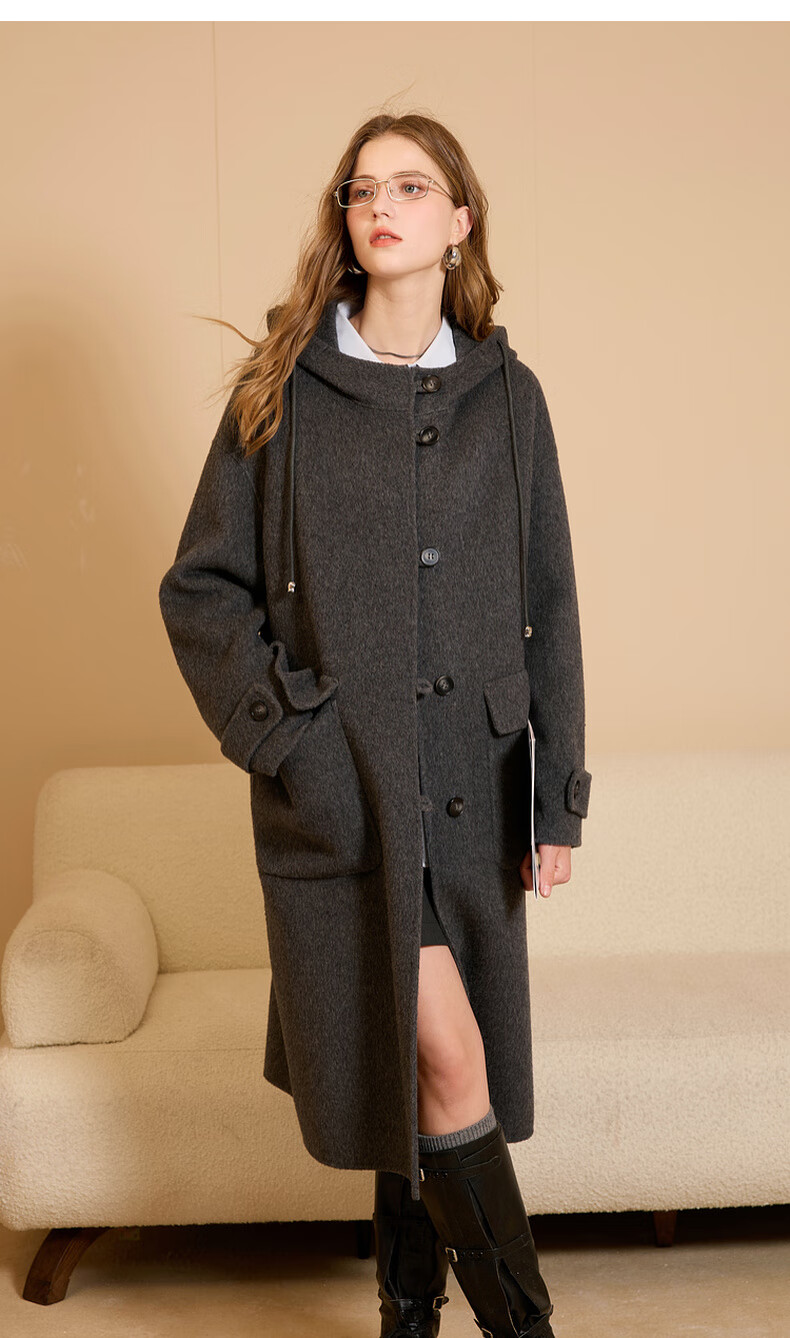 Tricolor 100 sheep wool 2025 winter new hooded double-sided woolen coat long woolen coat M