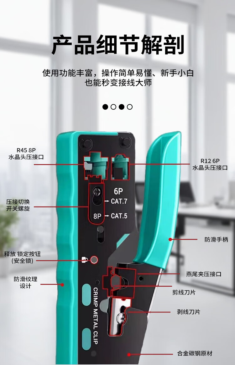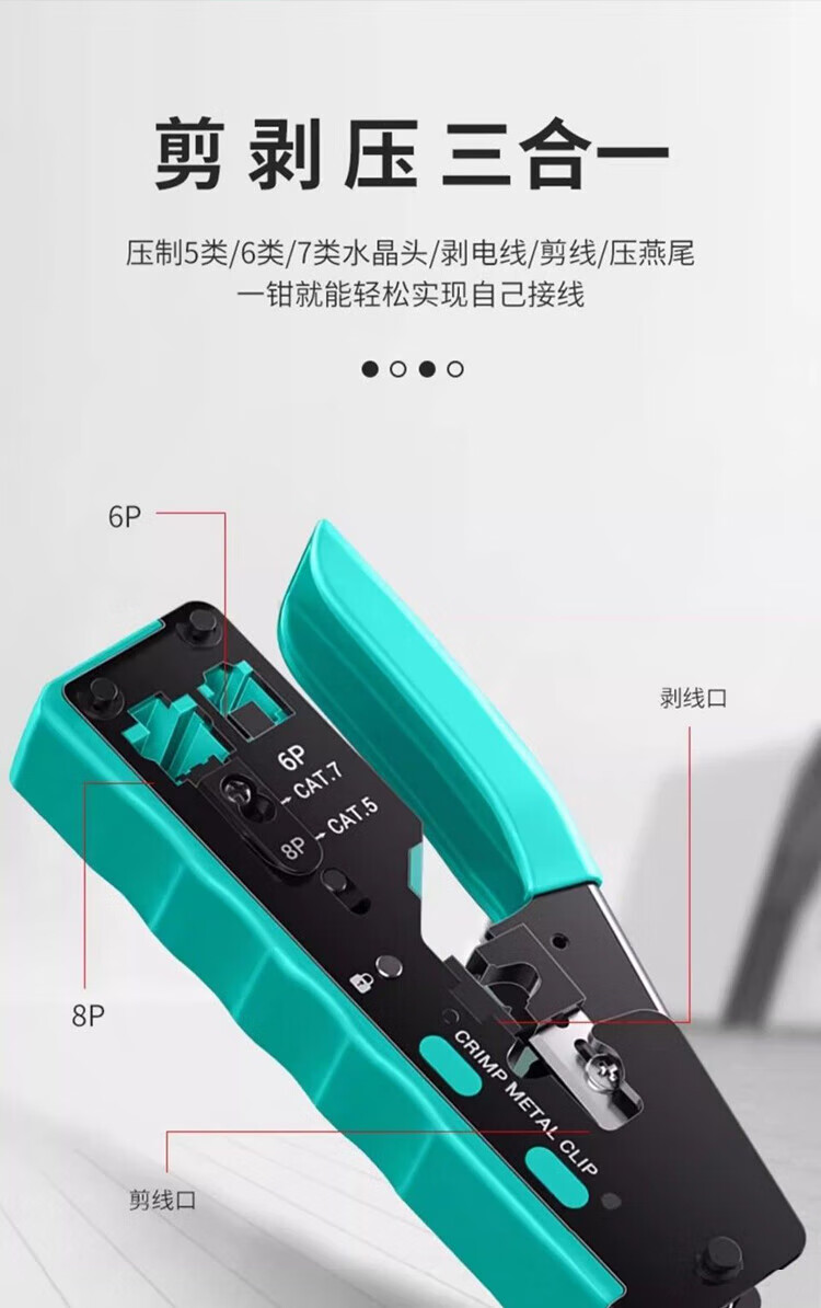 Padiling network cable pliers, Category 7 multifunctional Internet phone, crystal head wire stripping and crimping, Category 6 through hole clamping pliers