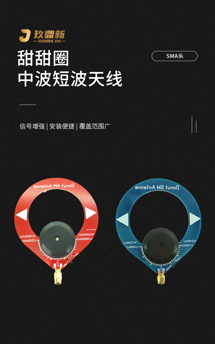 Jiudingxin donut antenna SW shortwave MW radio broadcast car portable external blue mini loop small loop antenna SMA male 4-24MHz JDX-SW-L