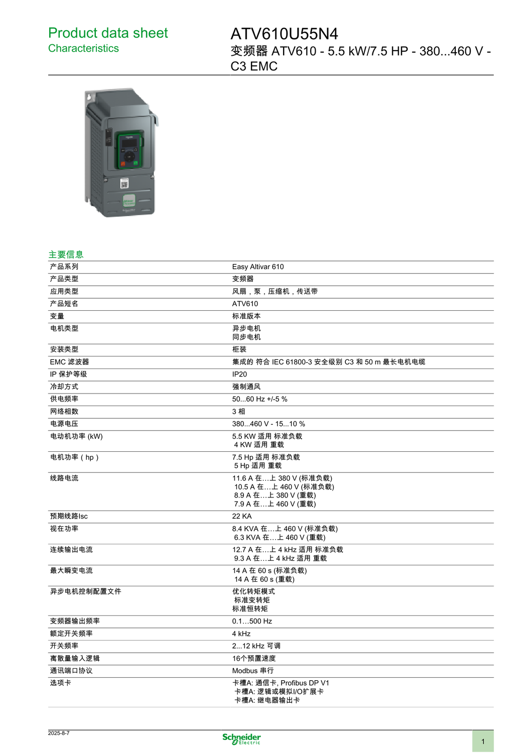 Schneider Electric Inverter ATV610 5.5 kW/7.5 HP C3 ATV610U55N4