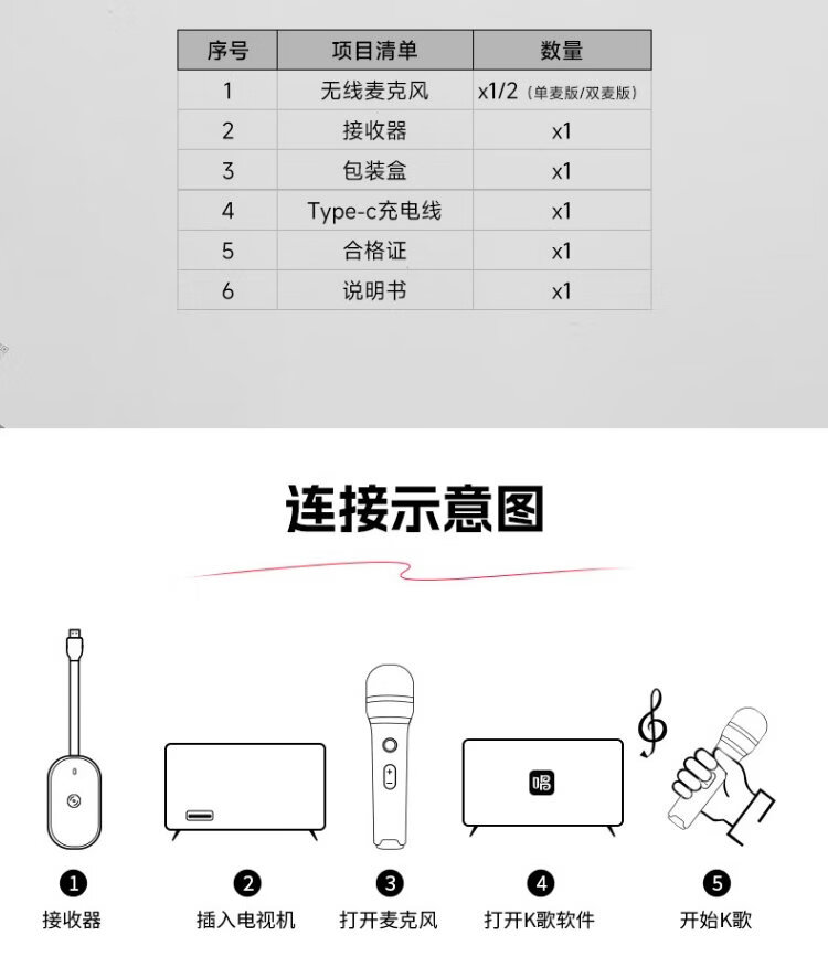 Changba K1 Wireless Karaoke Microphone, KTV Singing Wireless Microphone Dual Pack, Suitable for Xiaomi TV, Dongfeng Fengshen L8 Car, etc. Please pay attention to the compatible model when placing an order.
