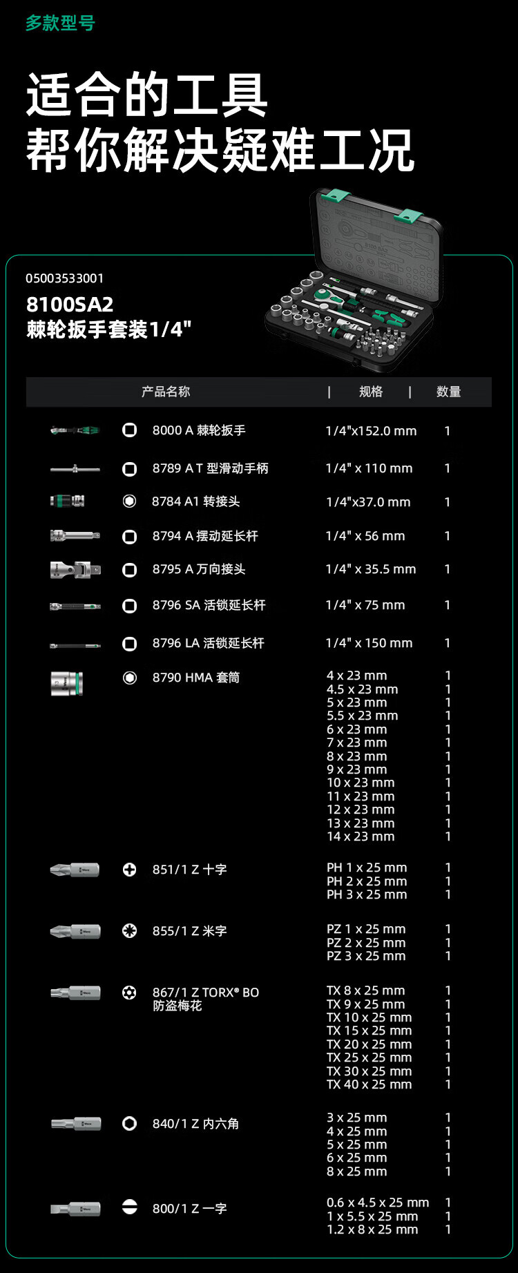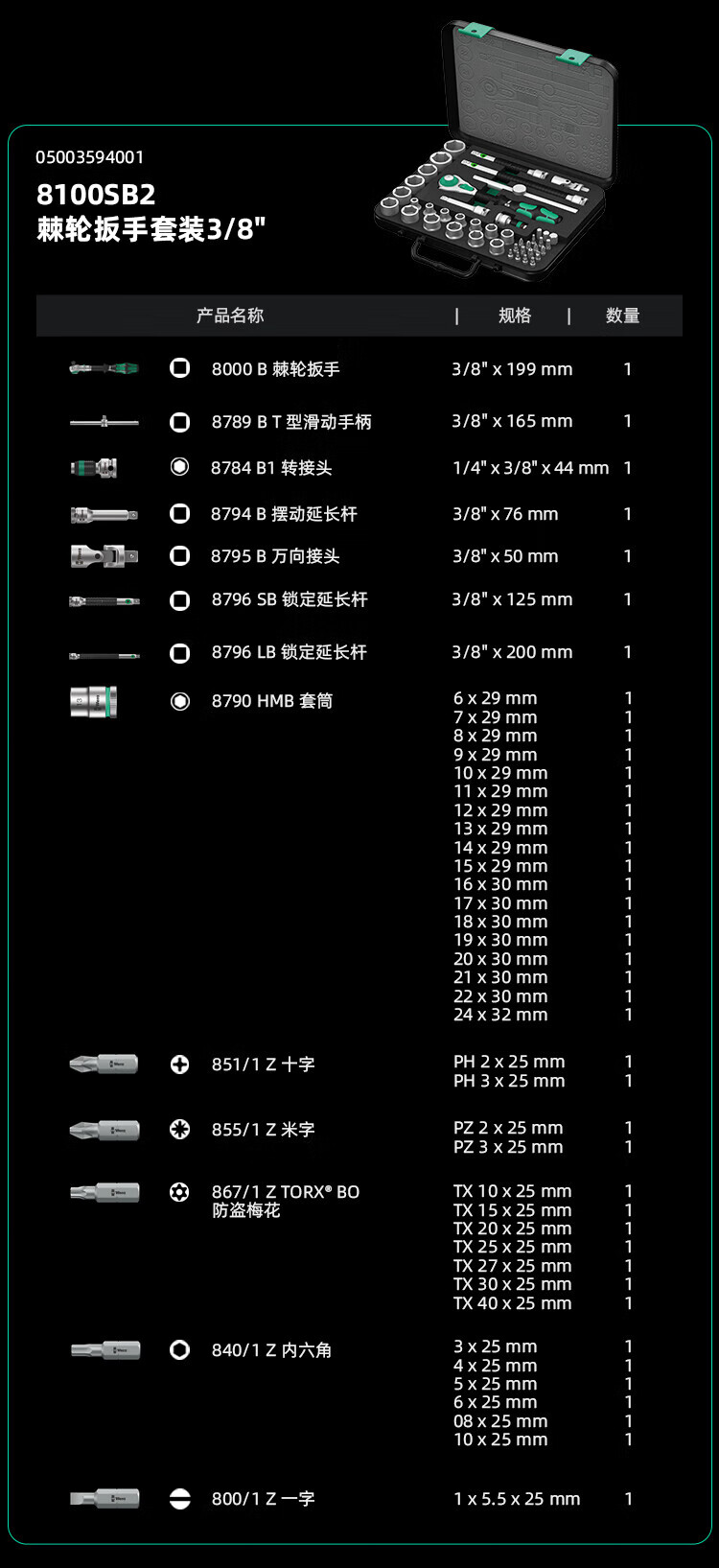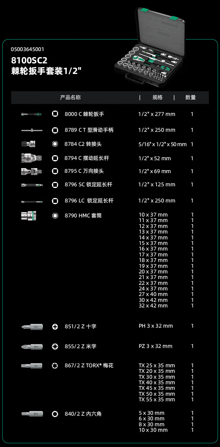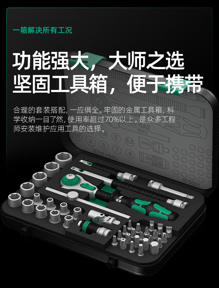 WERA imported ratchet wrench toolbox German auto repair fast 3/8 medium fly socket 43-piece set 05003594001