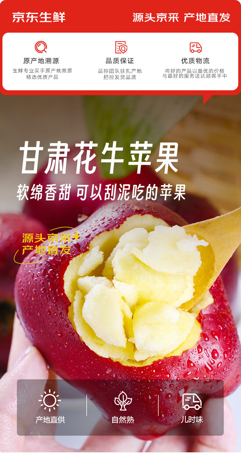 Jingxiansheng Gansu Tianshui Huaniu apples are big and red, 4.5 catties single fruit 260g + shipped directly from the source, free shipping