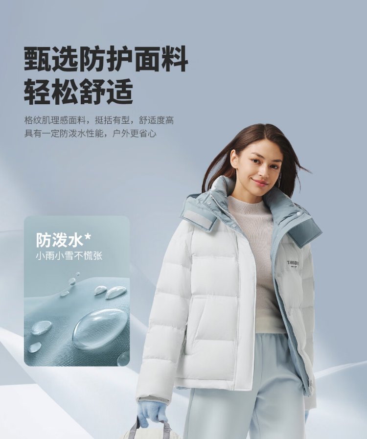Tambor Down Jacket Women's Short Removable Hat Fashion Casual Winter Warm Jacket 5530388D Morning Mist Blue 165