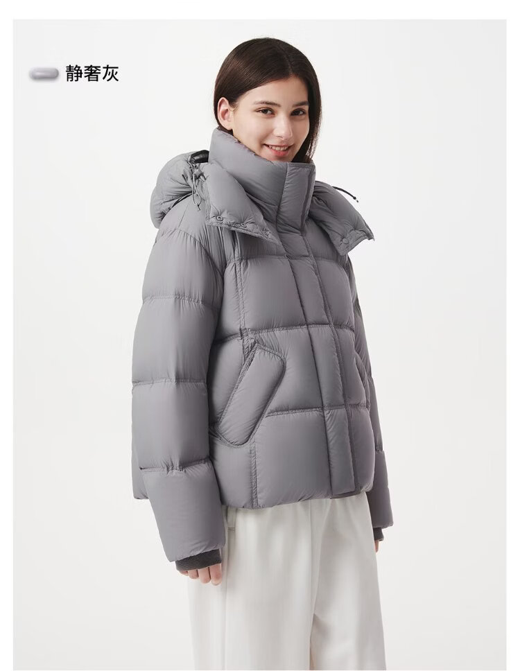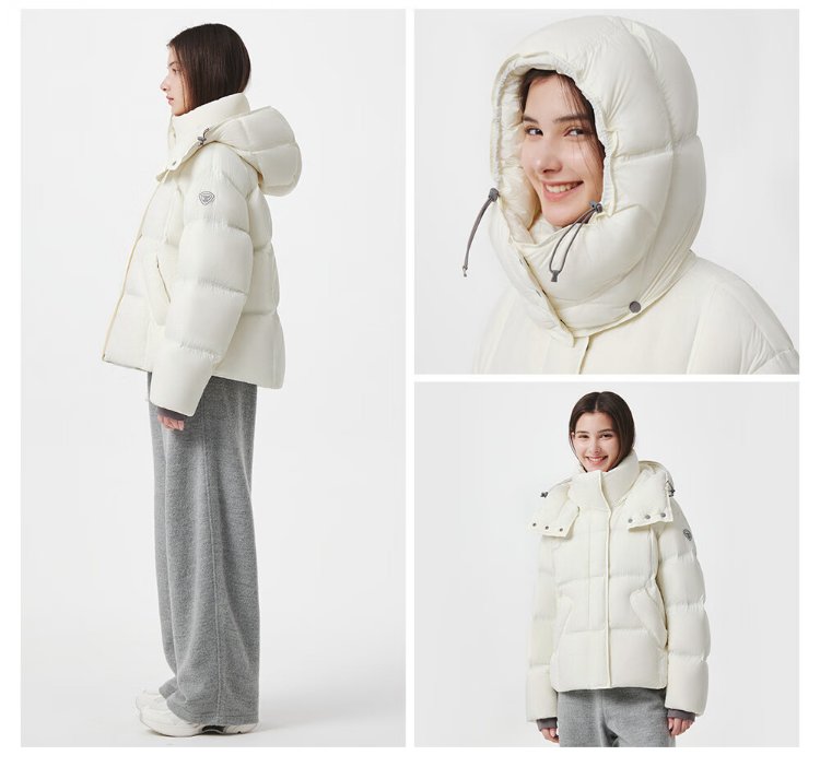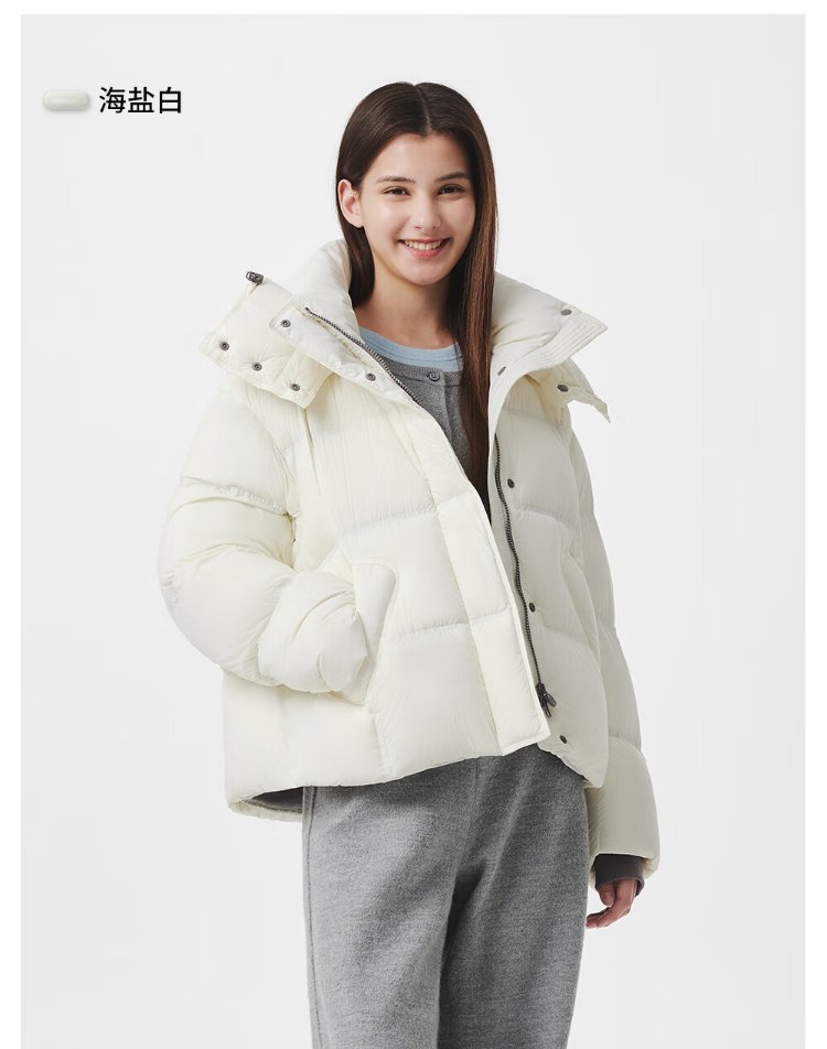 Tambor puff down jacket women's short removable hood silhouette autumn and winter thick coat 5530382Z sea salt white 155