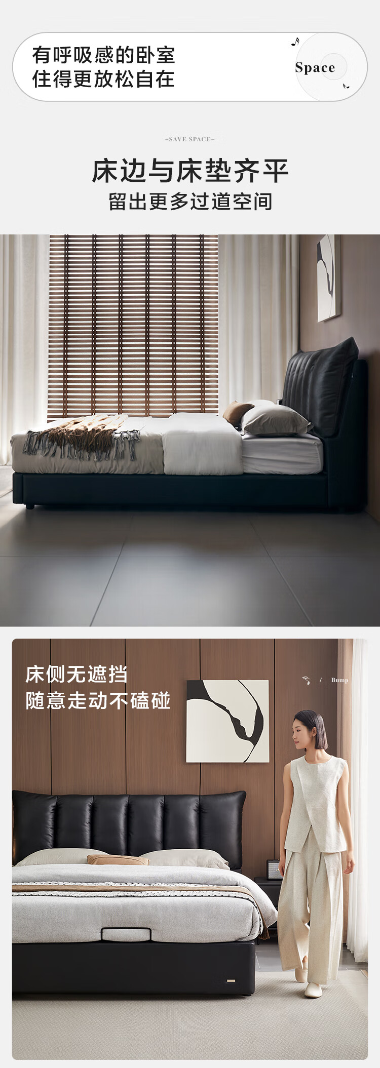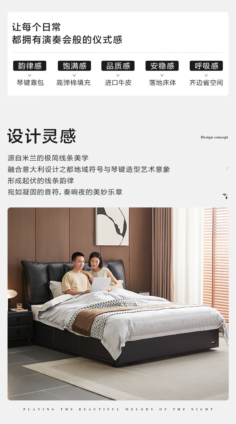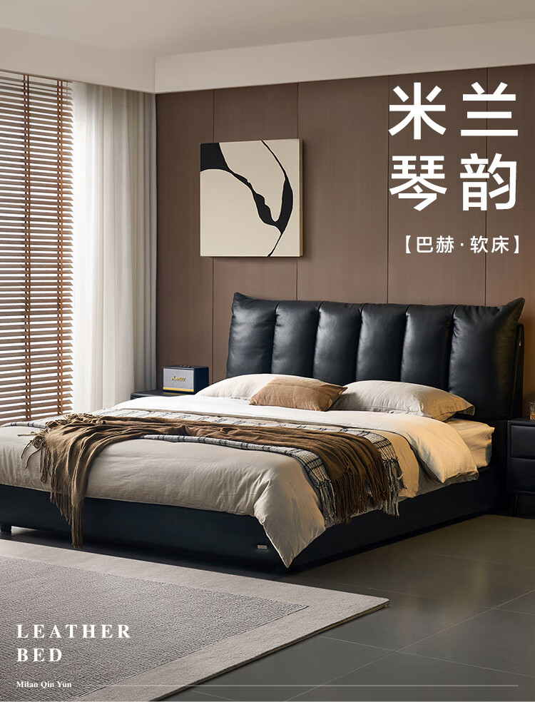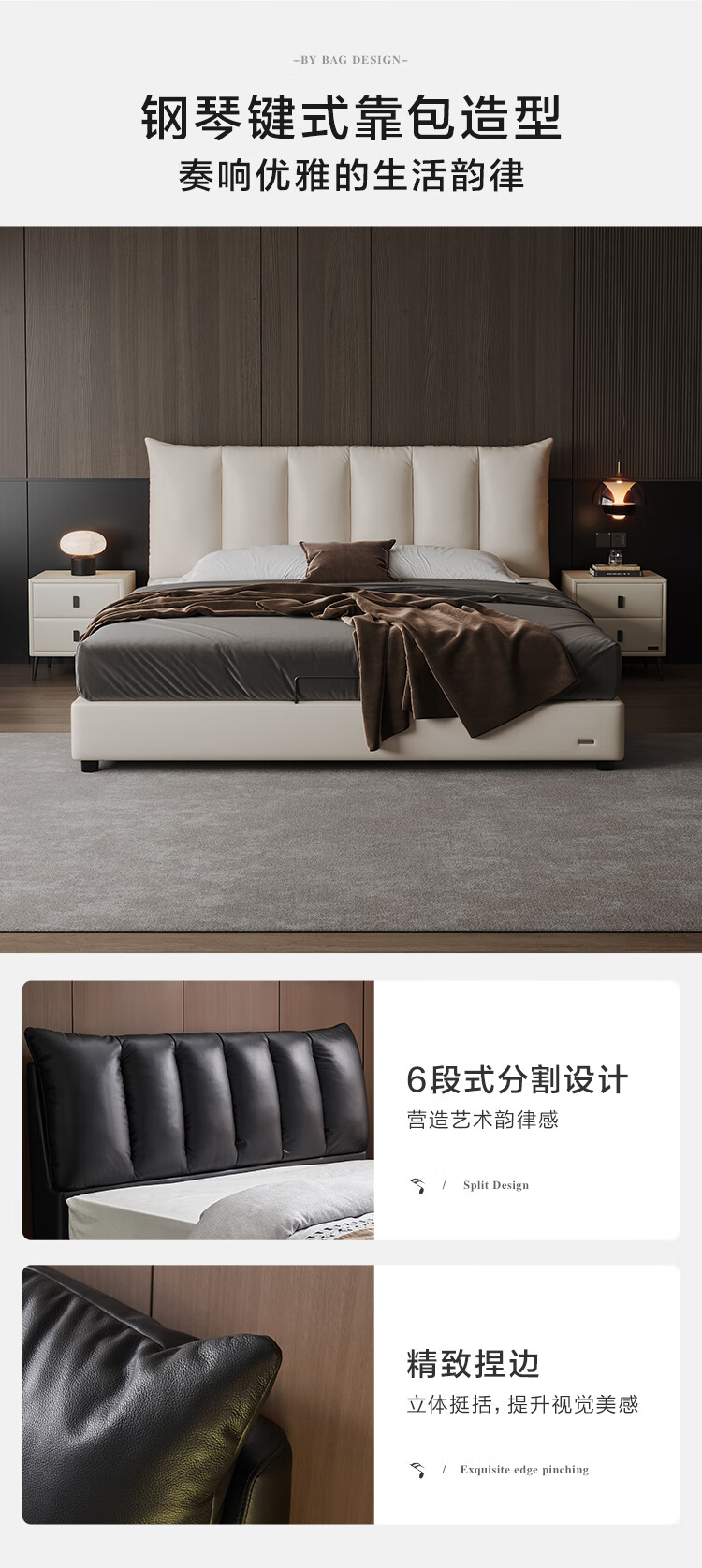 Quanyou Home Italian light luxury leather bedside soft cover master bedroom first floor cowhide art bed 1.8 meters 2 meters double bed