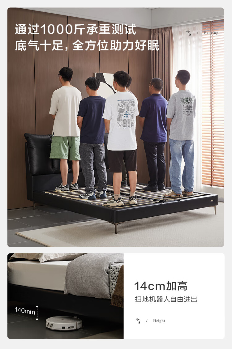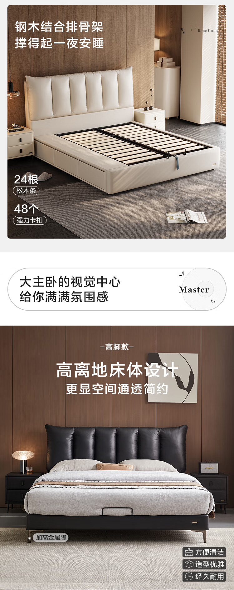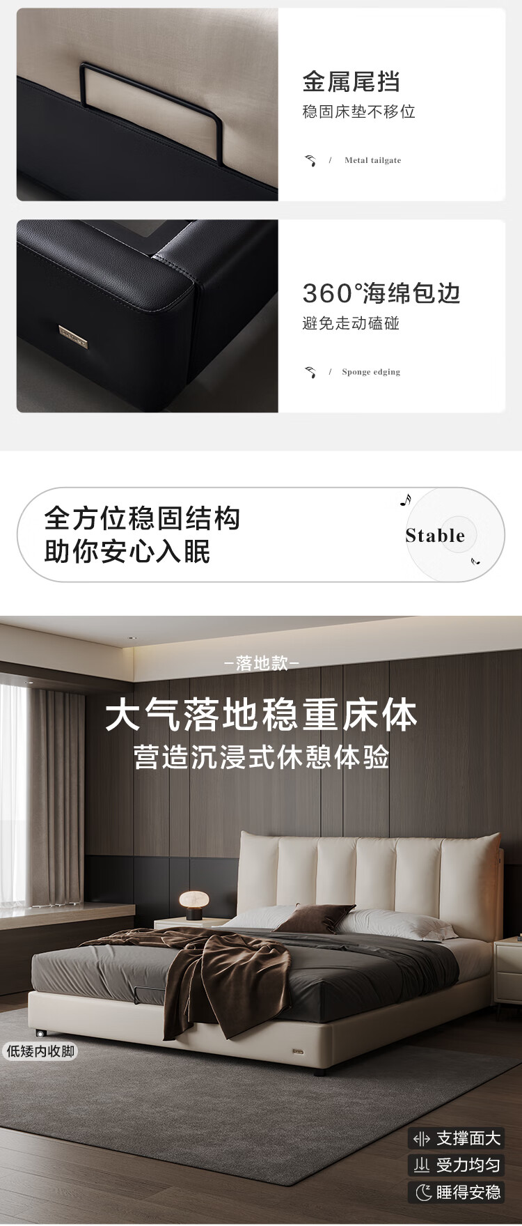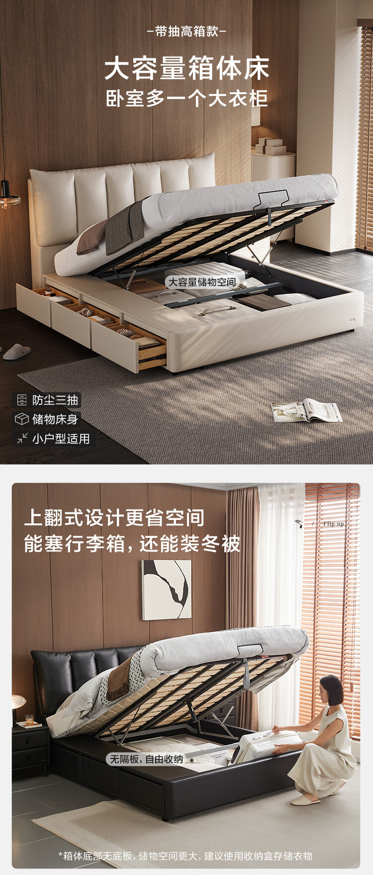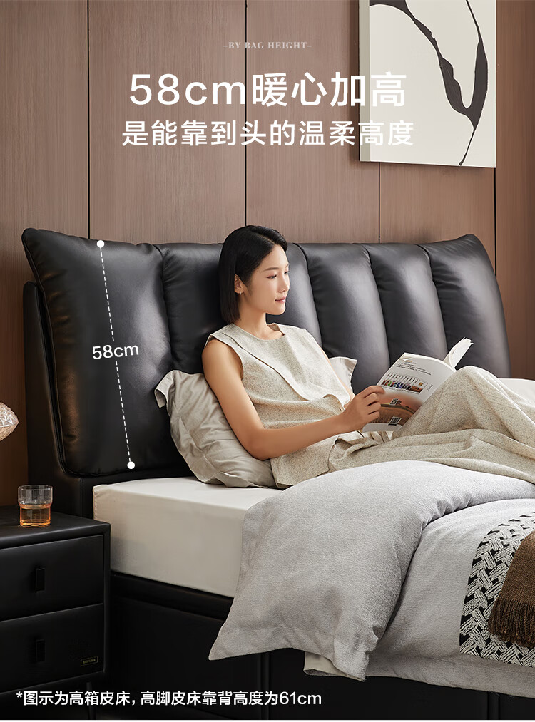 Quanyou Home Italian light luxury leather bedside soft cover master bedroom first floor cowhide art bed 1.8 meters 2 meters double bed