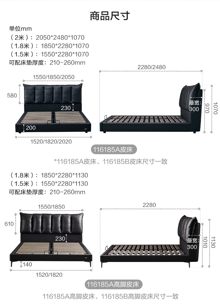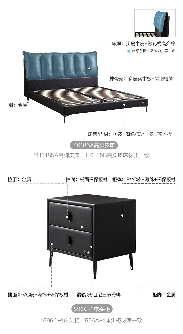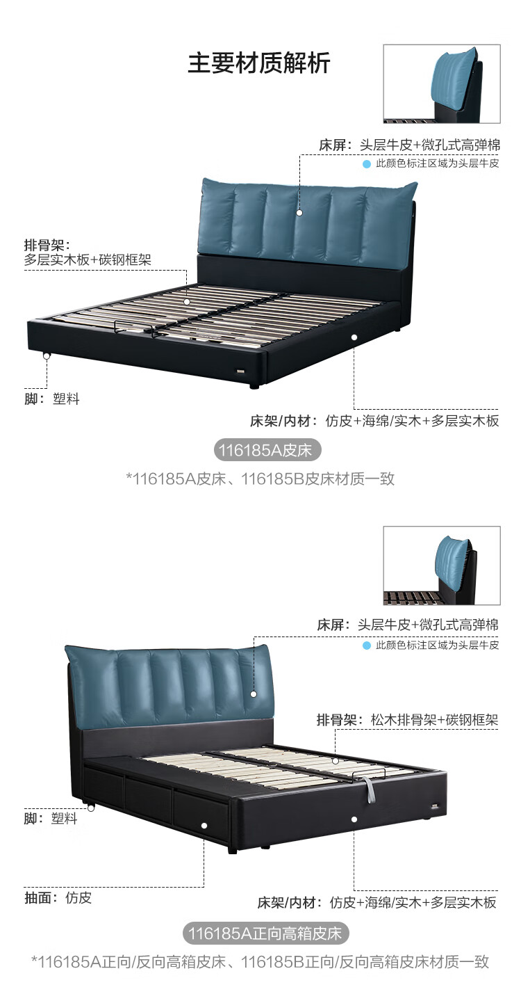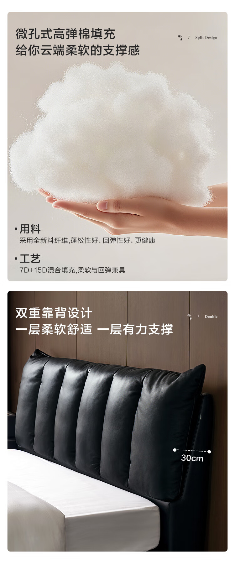 Quanyou Home Italian light luxury leather bedside soft cover master bedroom first floor cowhide art bed 1.8 meters 2 meters double bed