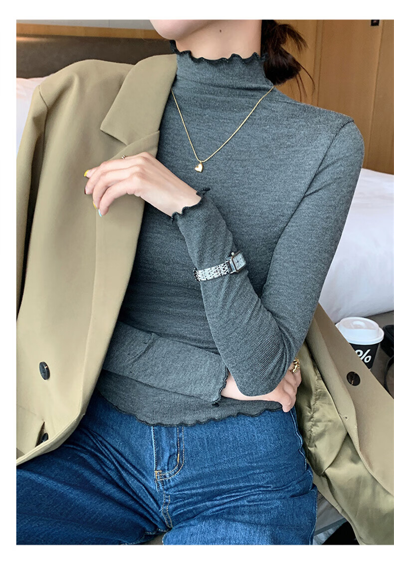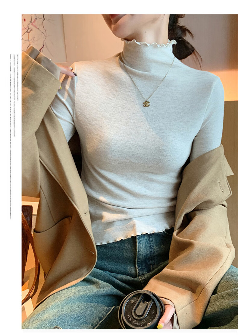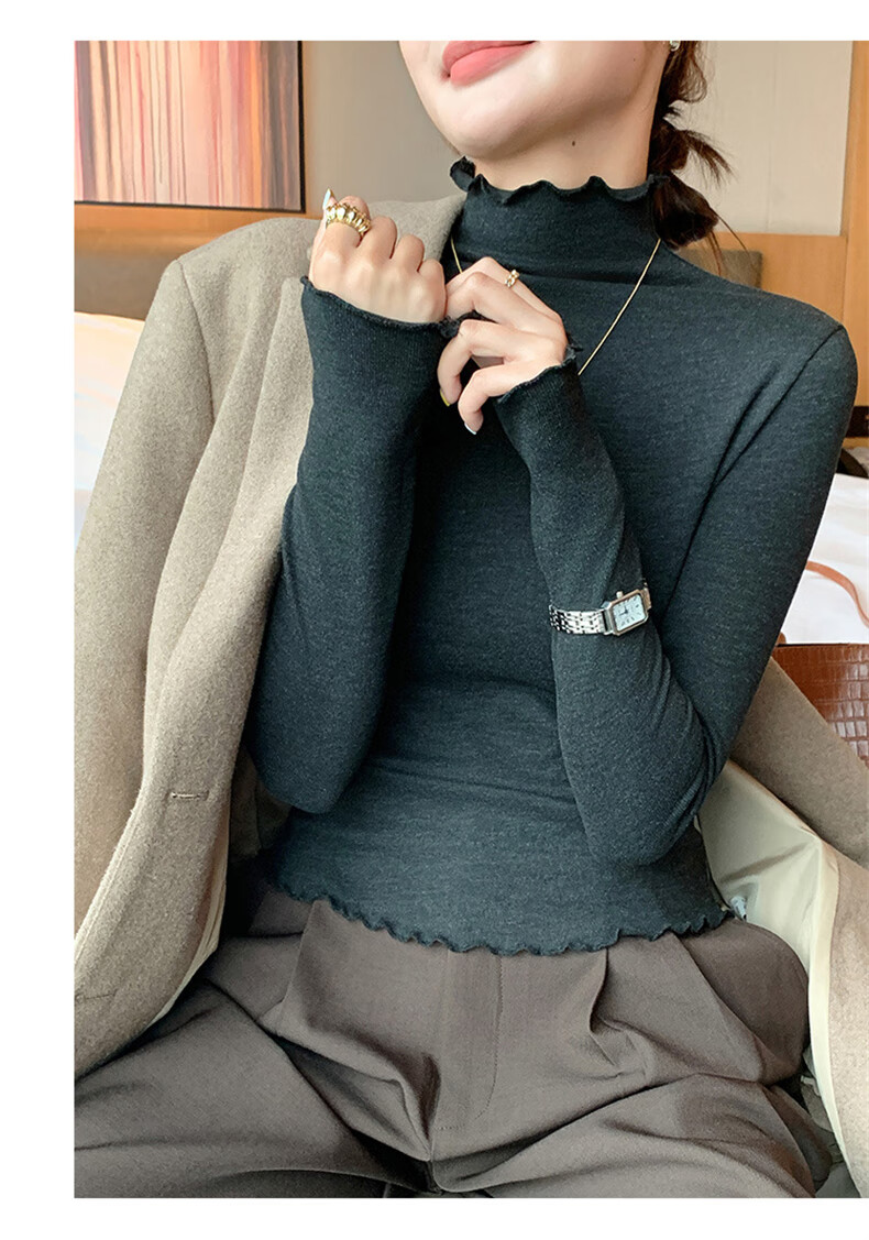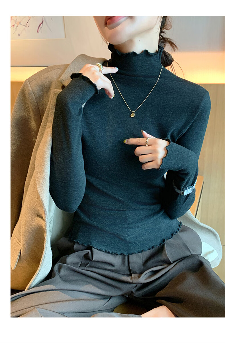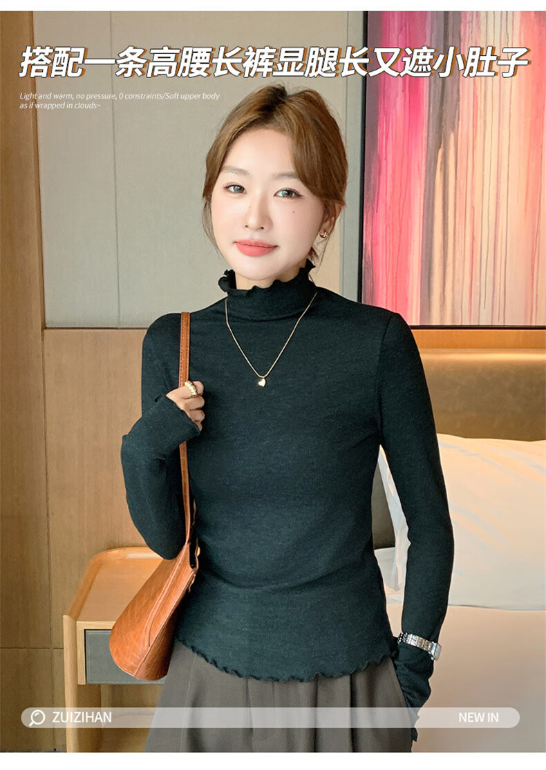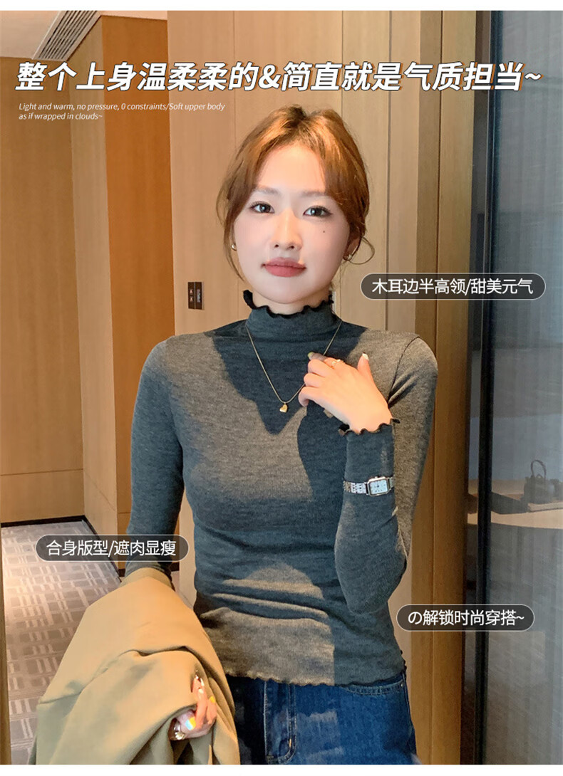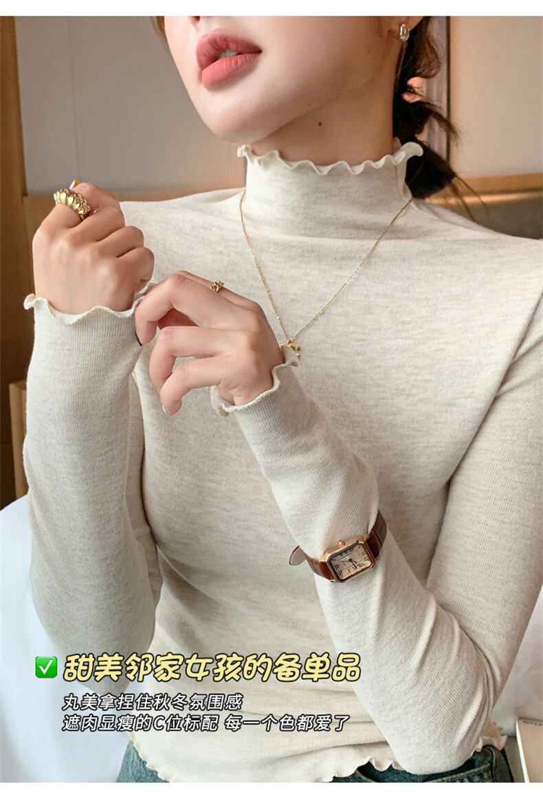 Langsha ear-hemmed half-high collar bottoming shirt for women, autumn and winter 2025 new style, western style, slim-fitting sweater top that can be worn outside
