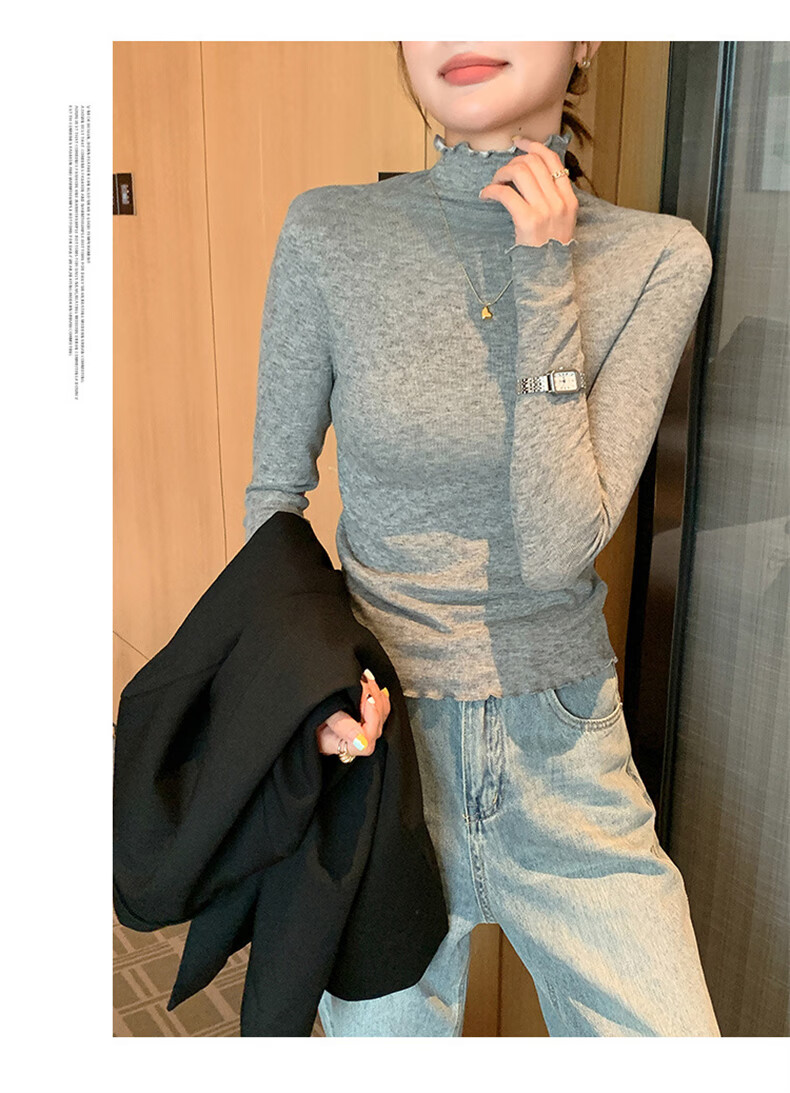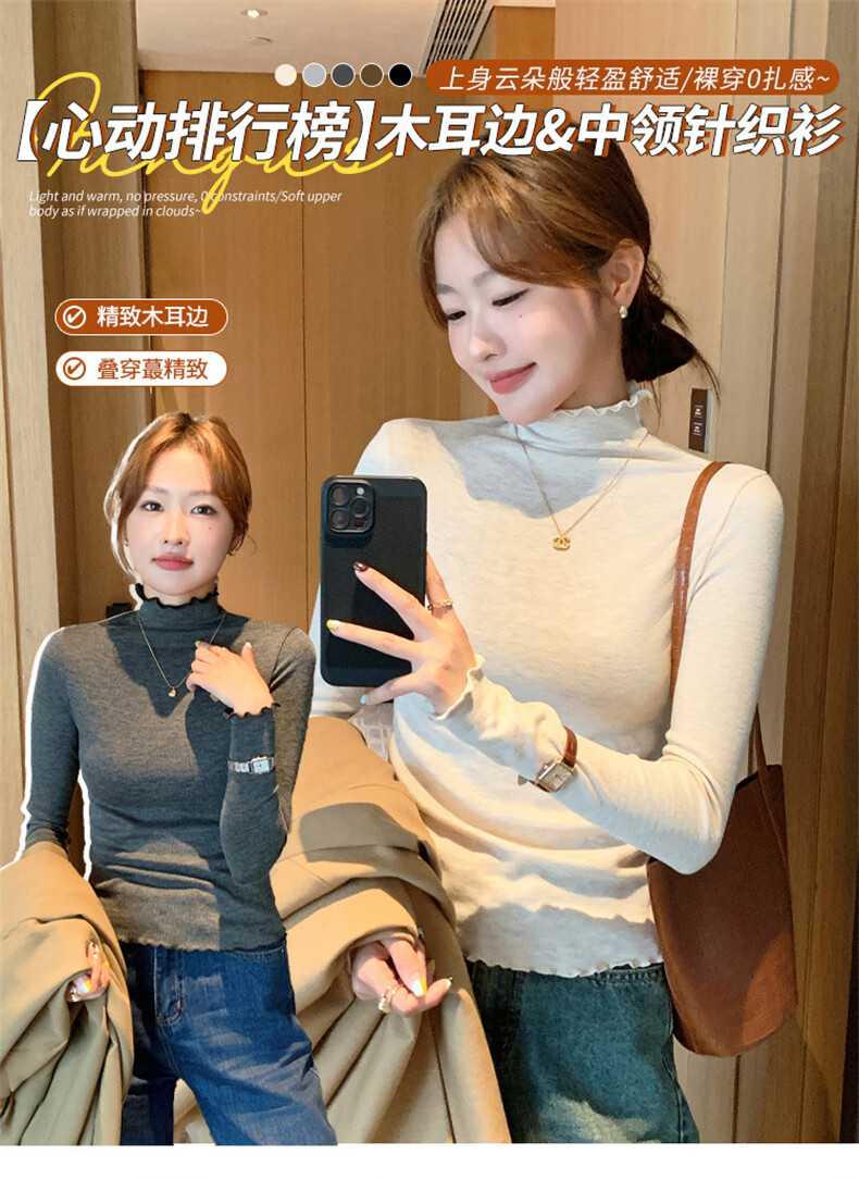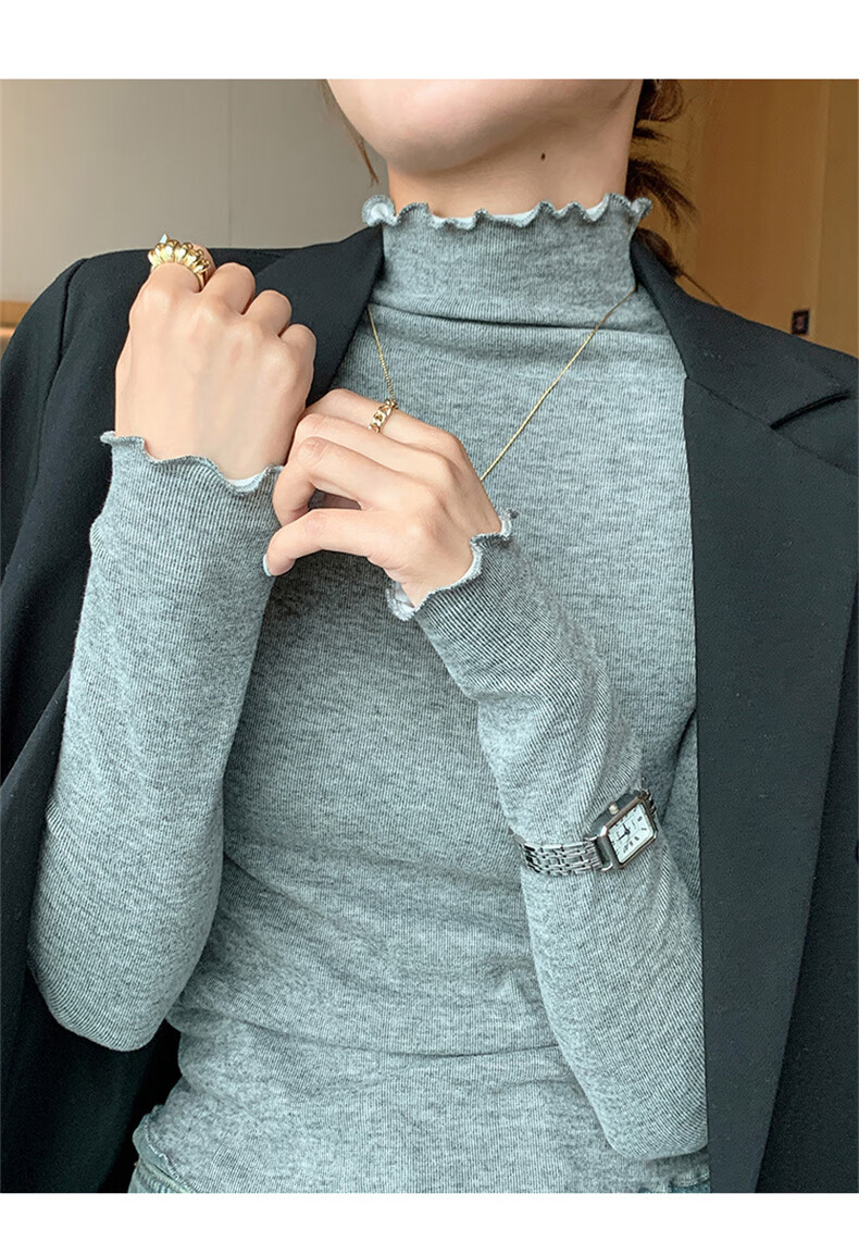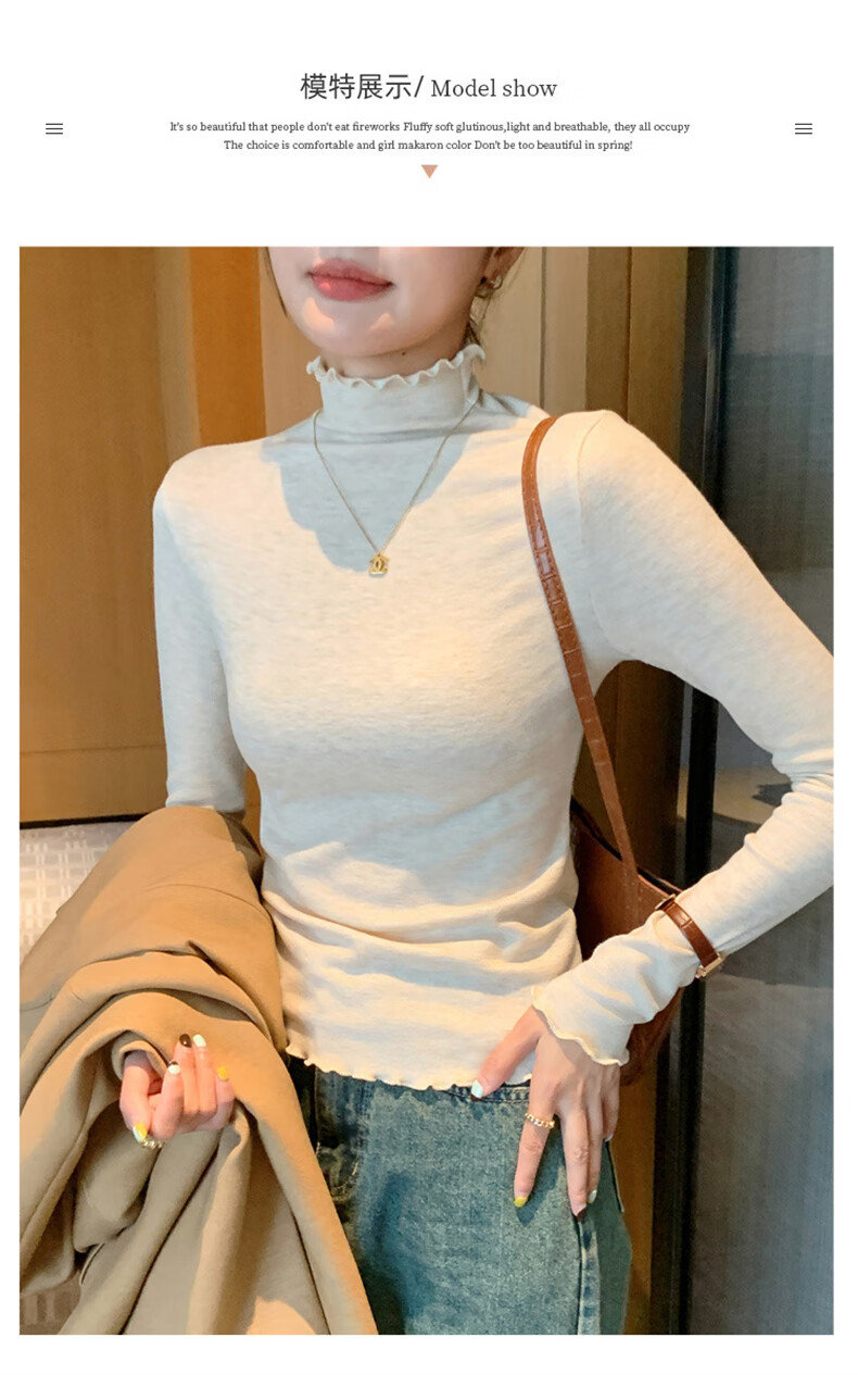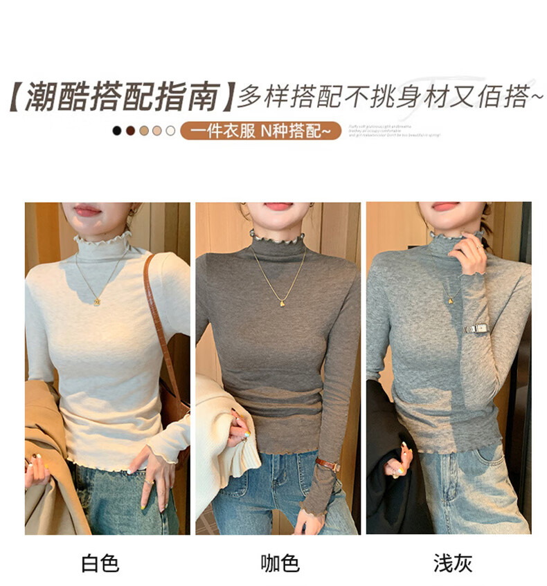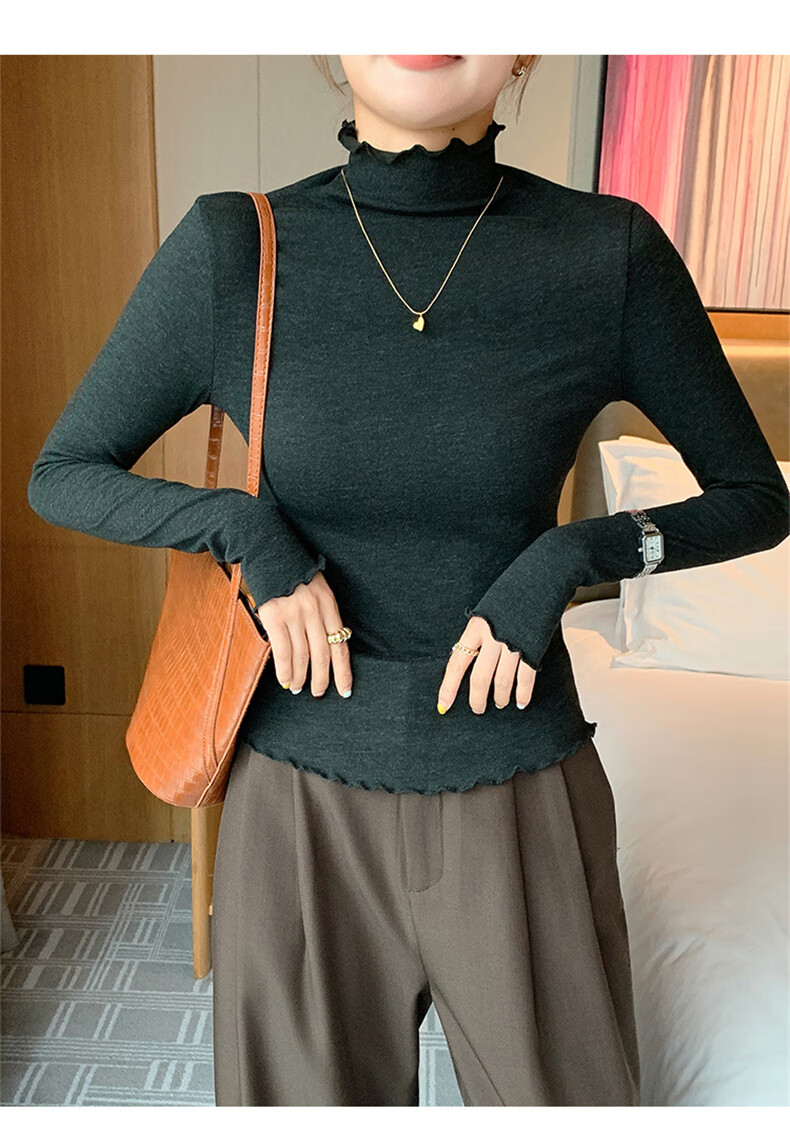Langsha ear-hemmed half-high collar bottoming shirt for women, autumn and winter 2025 new style, western style, slim-fitting sweater top that can be worn outside