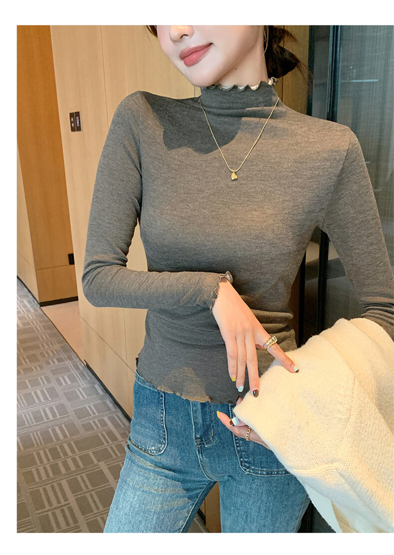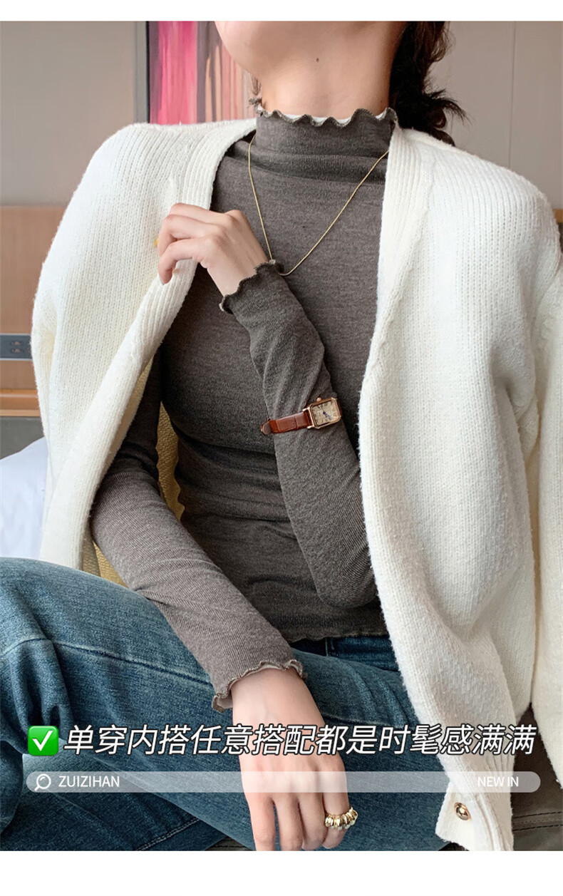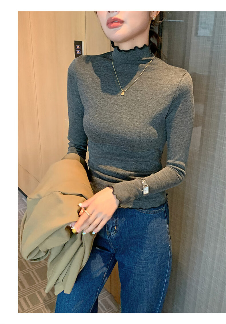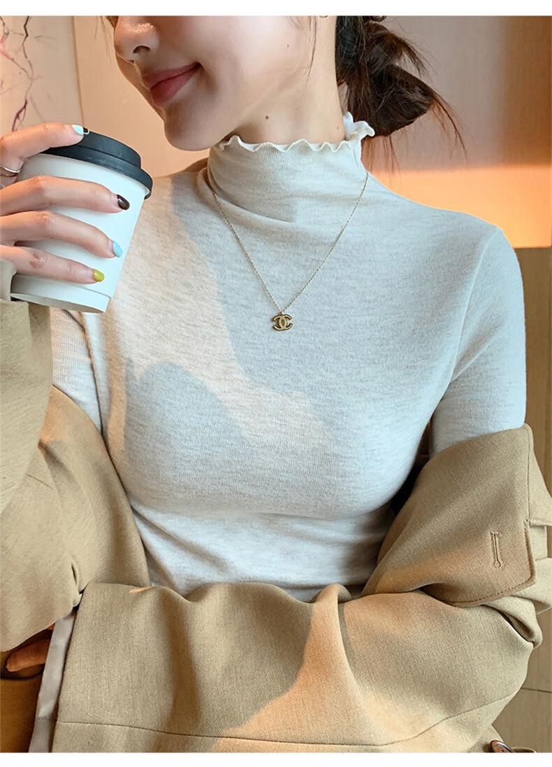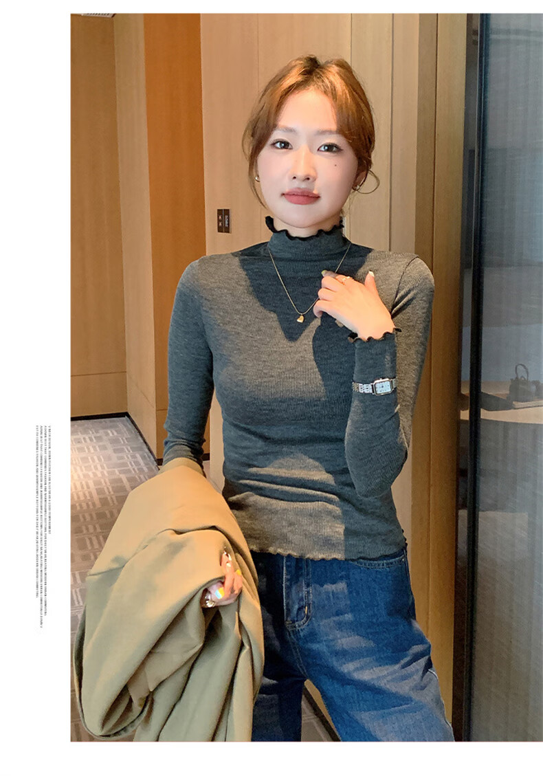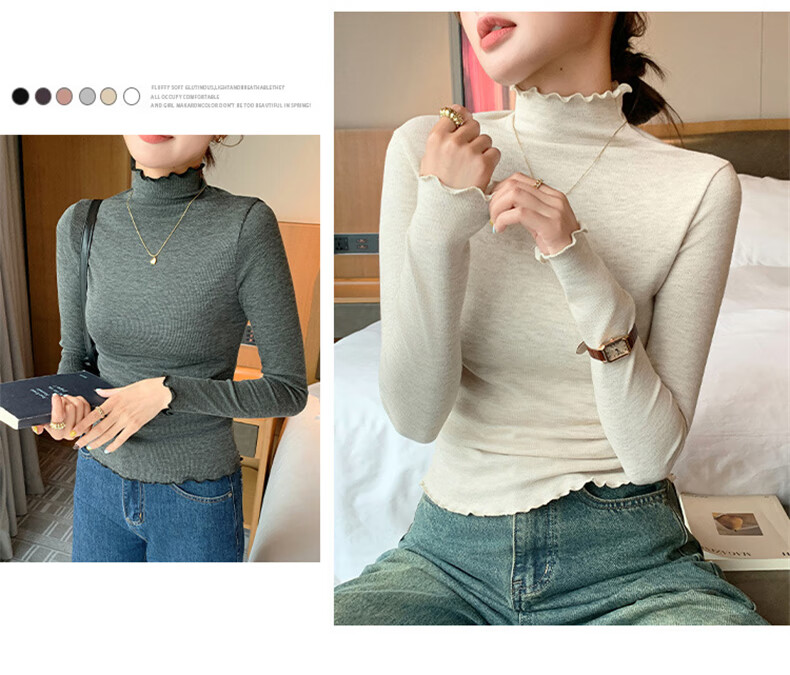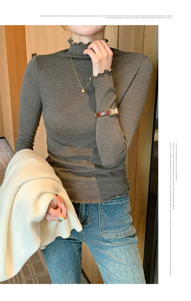 Langsha ear-hemmed half-high collar bottoming shirt for women, autumn and winter 2025 new style, western style, slim-fitting sweater top that can be worn outside