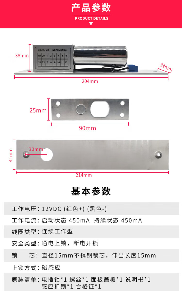 ZKAT access control electric bolt lock glass door wooden door electric control lock electronic lock electric bolt lock two-wire terminal model