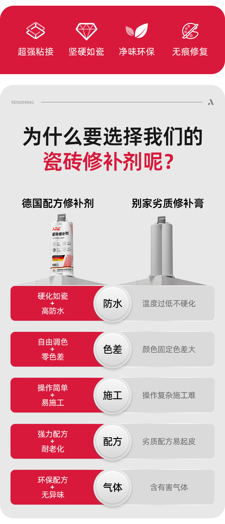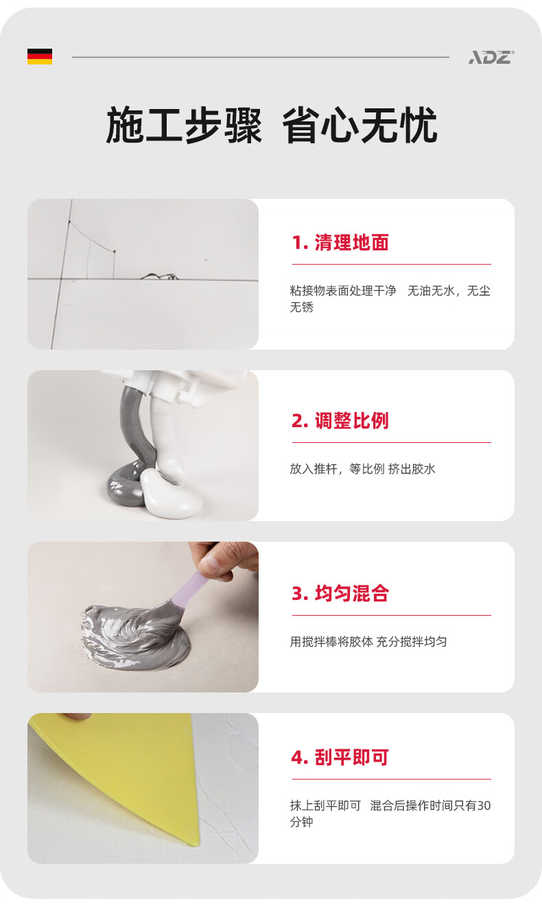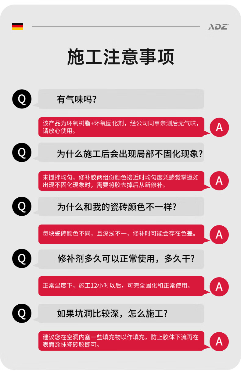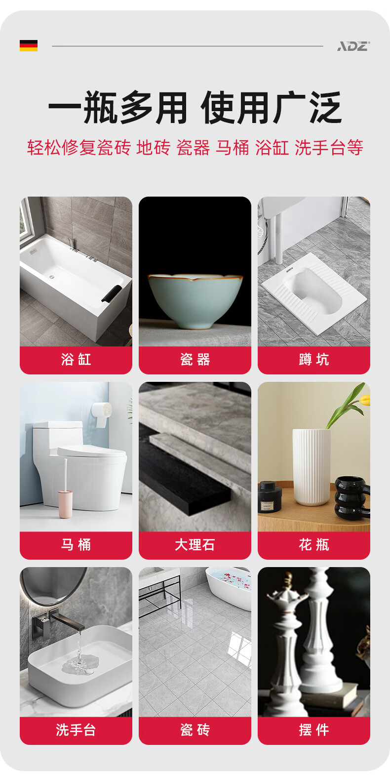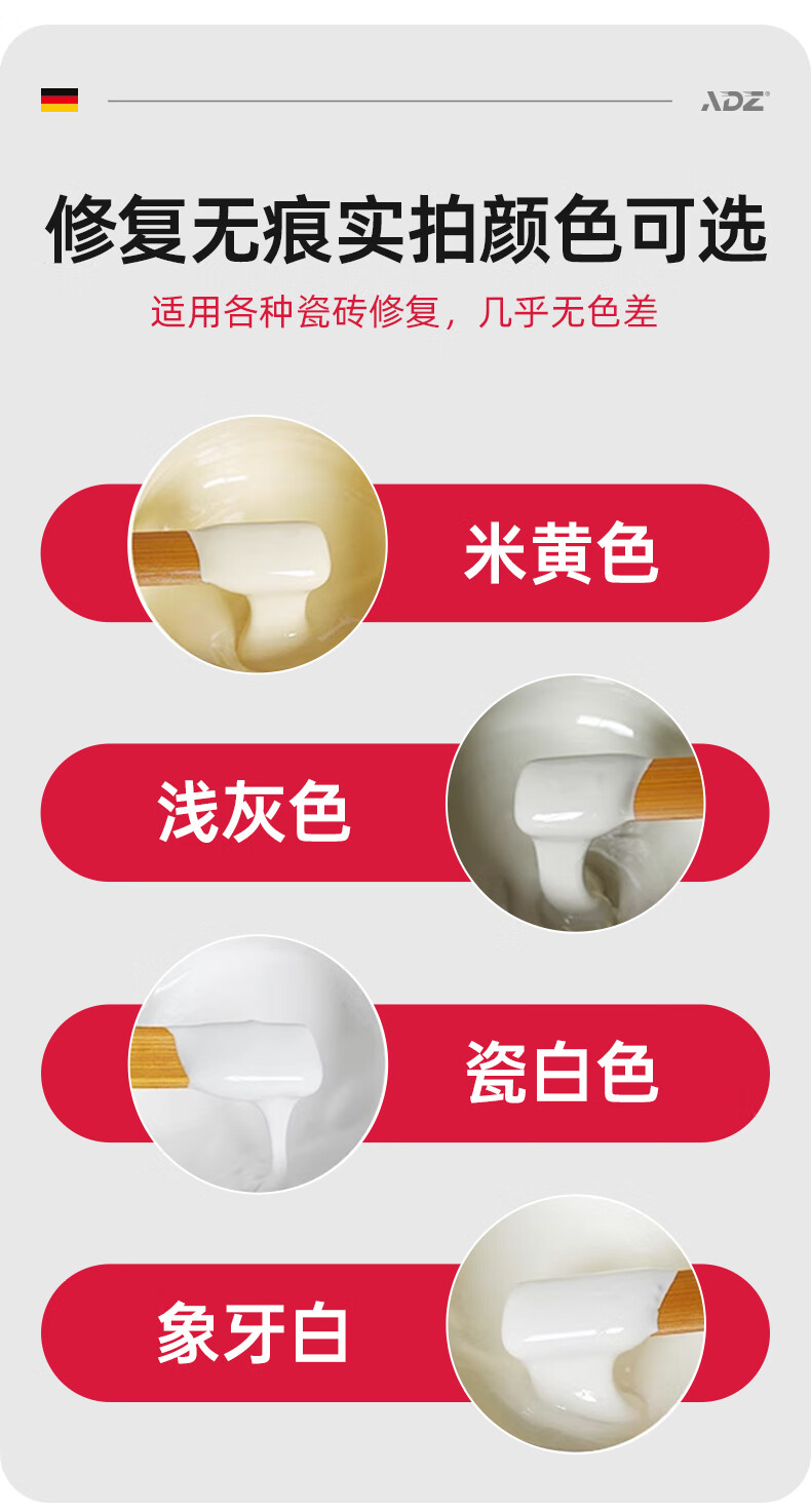 ADZ Germany tile repair agent damaged and ugly glazed repair paste floor tiles repair potholes and cracks artifact can be color-adjusted traceless glue repair as new upgraded version porcelain white 100g