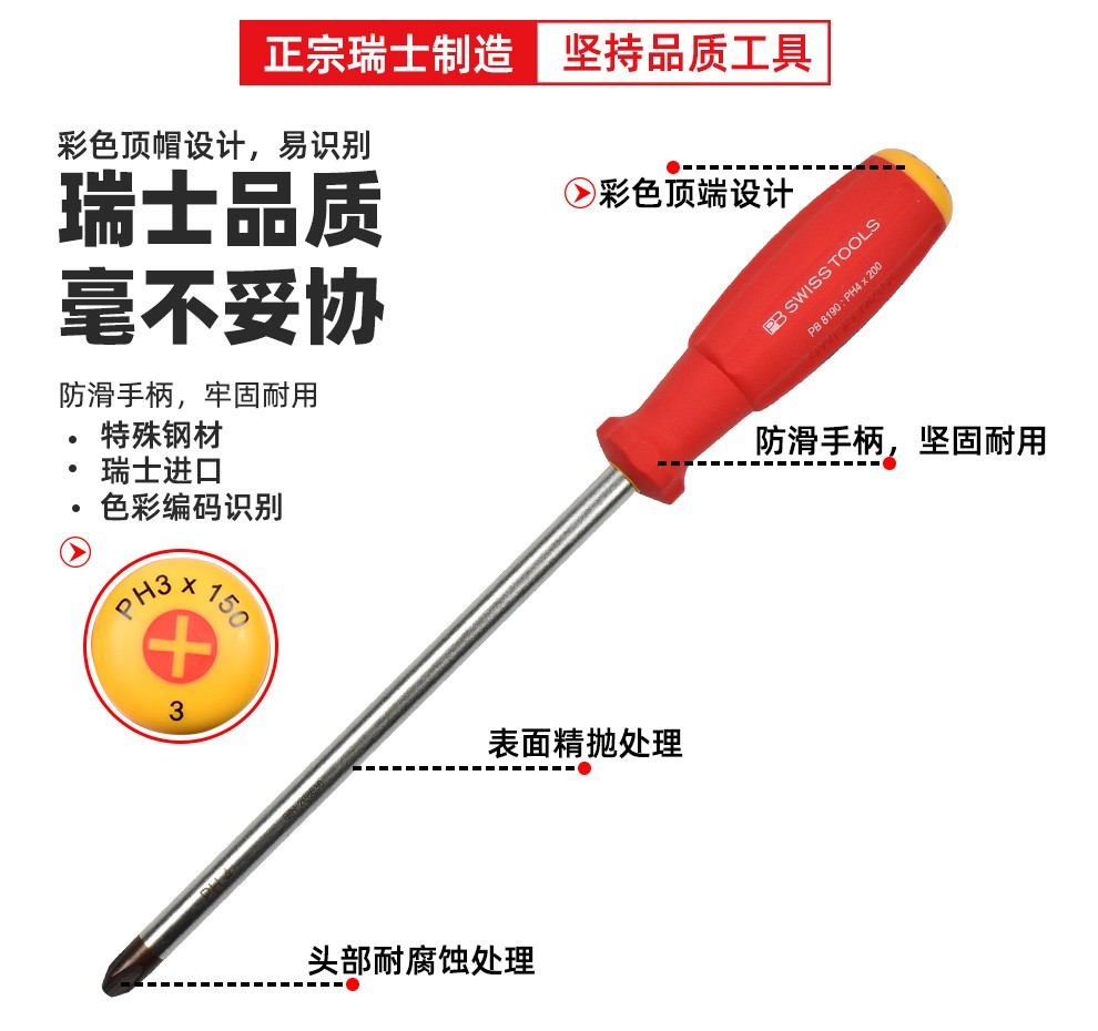PB SWISSTOOLS Swiss original imported one-word cross screwdriver screwdriver computer repair tool screwdriver super hard PB 8190.1-300 cross