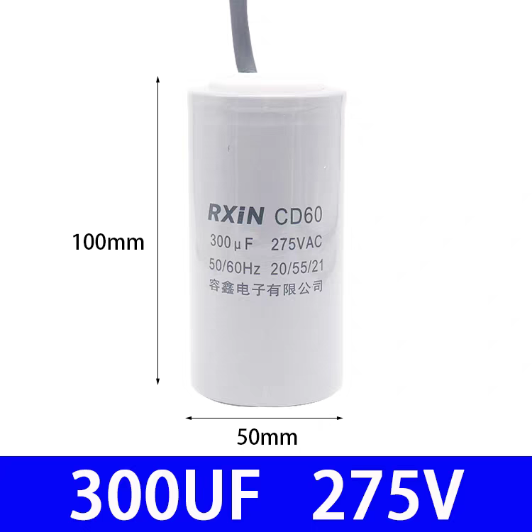 RXiN Rongxin CD60A 275VAC 300uf cable type aluminum shell type motor starting capacitor 1 piece suitable for water pumps/motors/air compressors/cranes, etc.