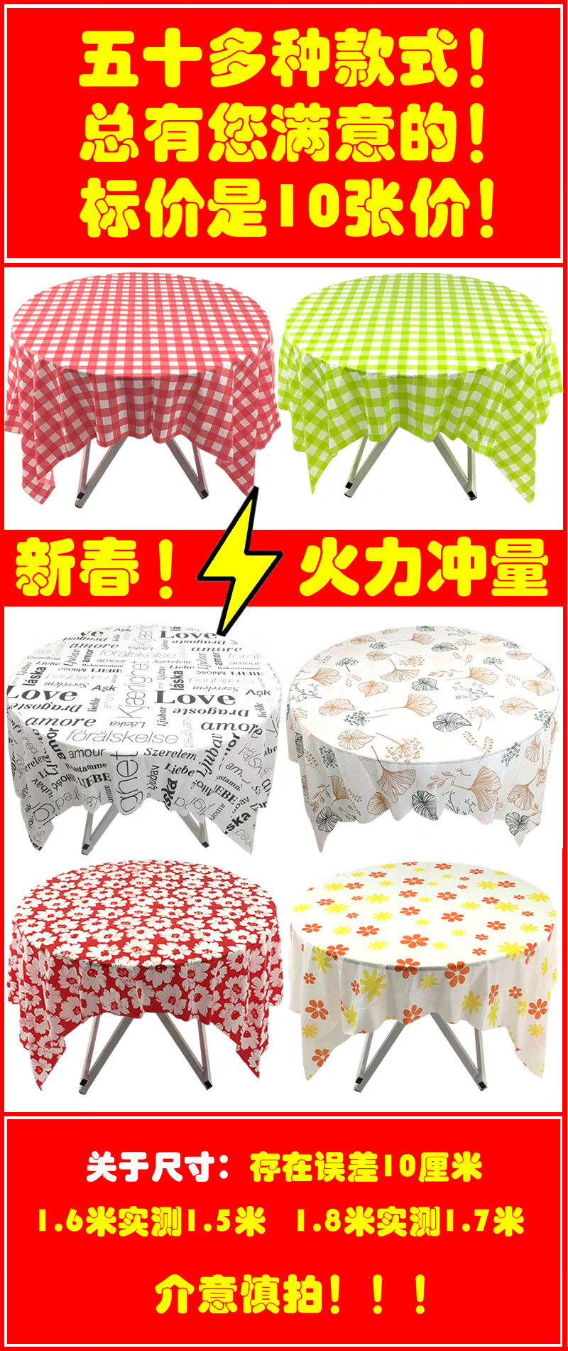 Chuge high-quality 10 pieces 1 meter printed disposable tablecloth thickened plastic tablecloth round table waterproof table mat home tablecloth 10 pieces/bag 2.0X2.0 meters white peony