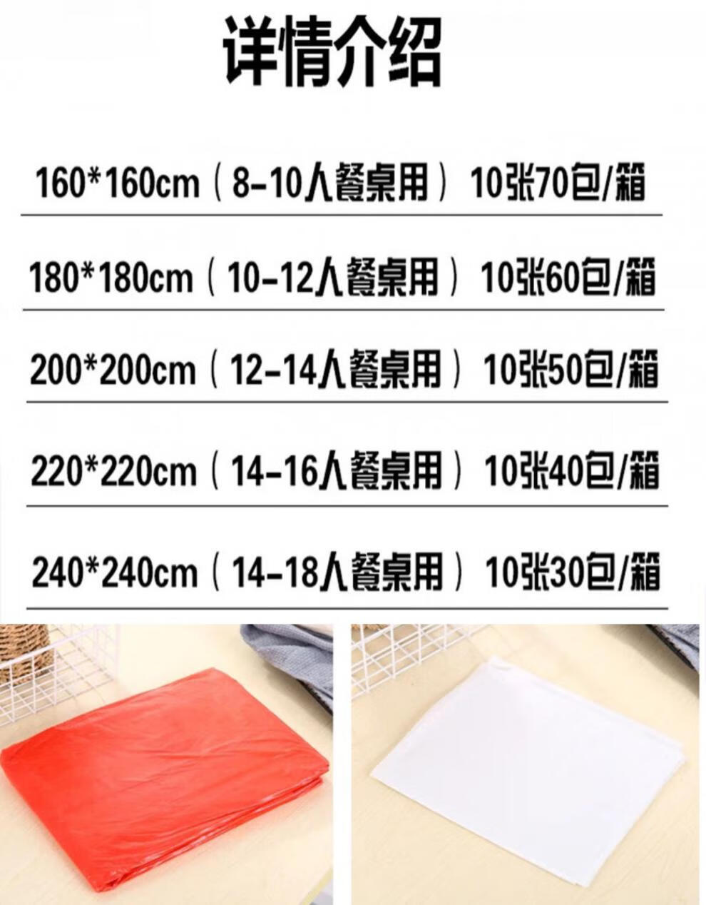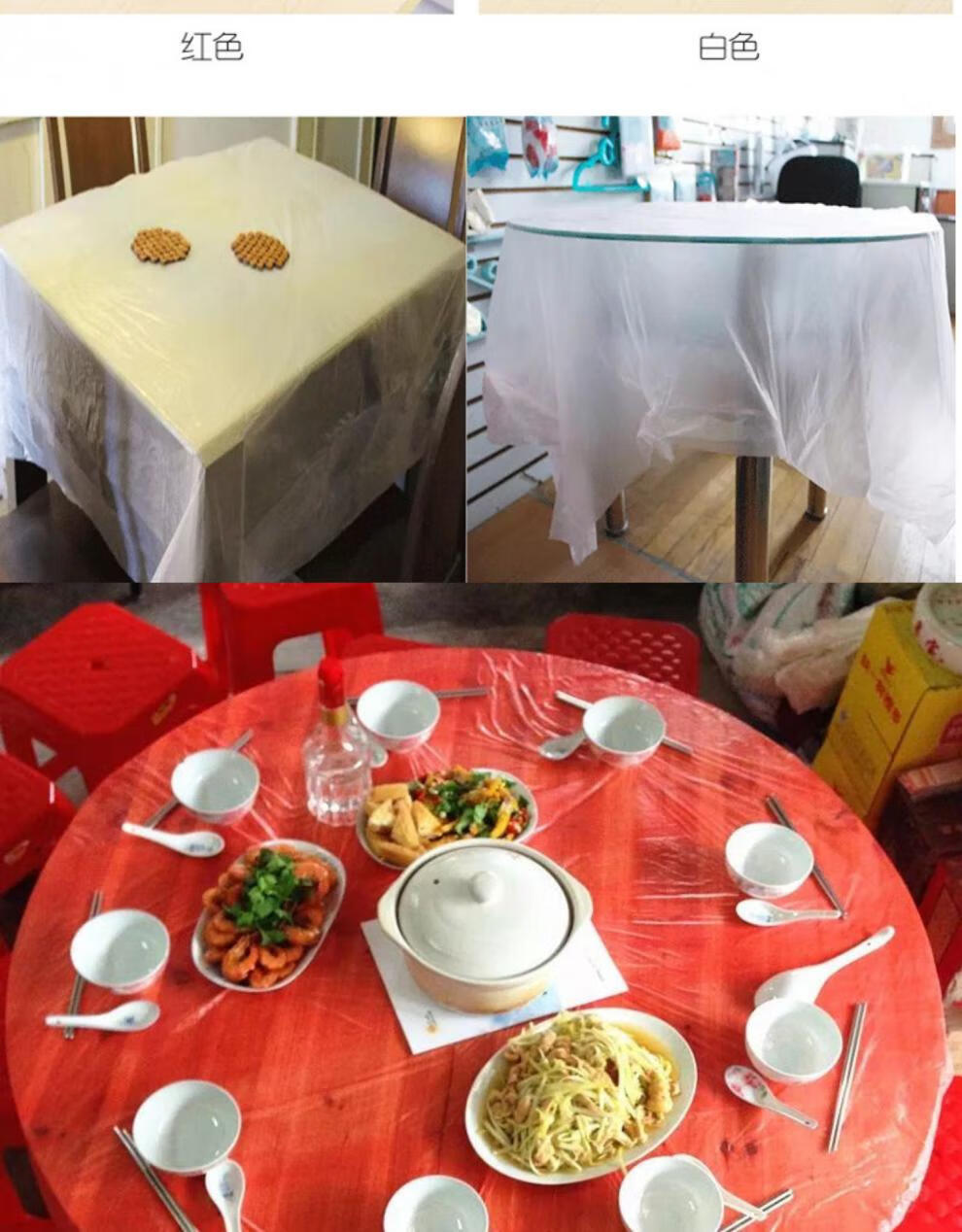 Disposable tablecloth thickened plastic film round table round rectangular square wedding banquet tablecloth thickened red 1.8m*1.8m 1 pack of 10 sheets