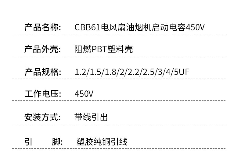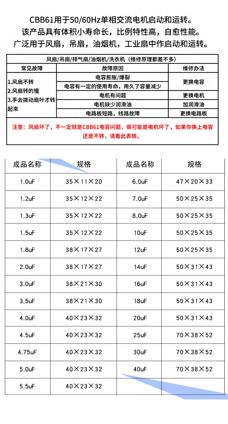 ZAVE CBB61 electric fan starting capacitor 2.5UF