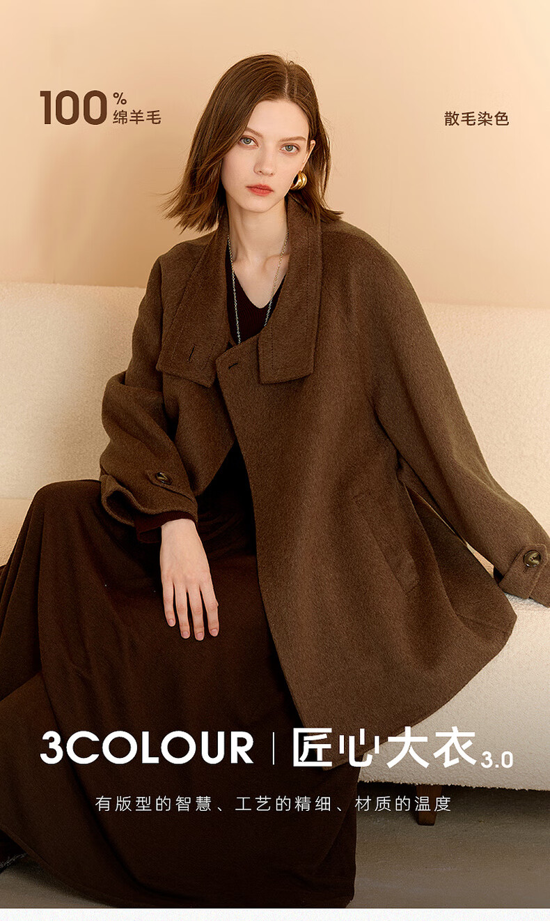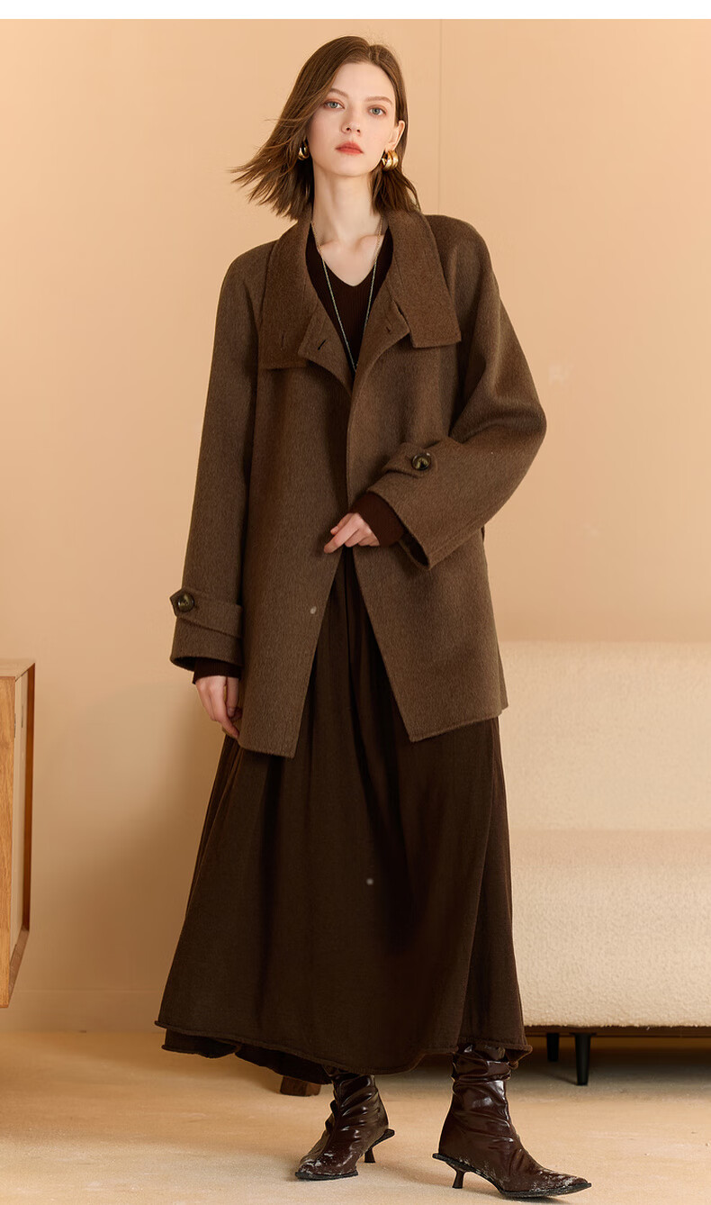 Tricolor 100 Sheep Wool 2025 Winter New Stand Collar Double-sided Woolen Coat Woolen Jacket M