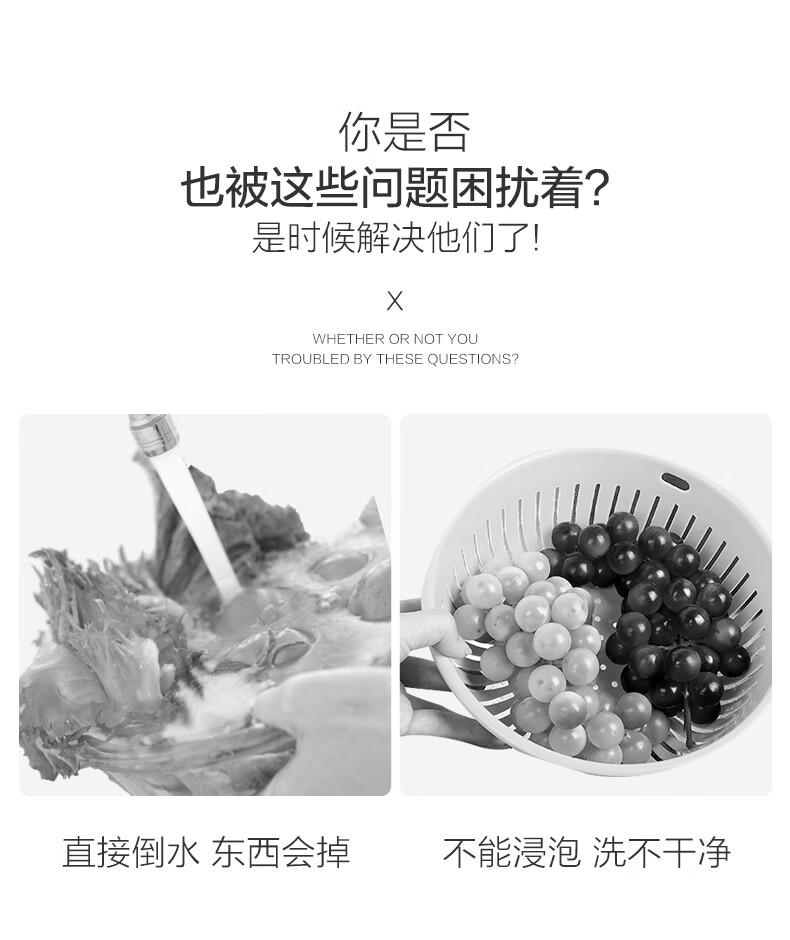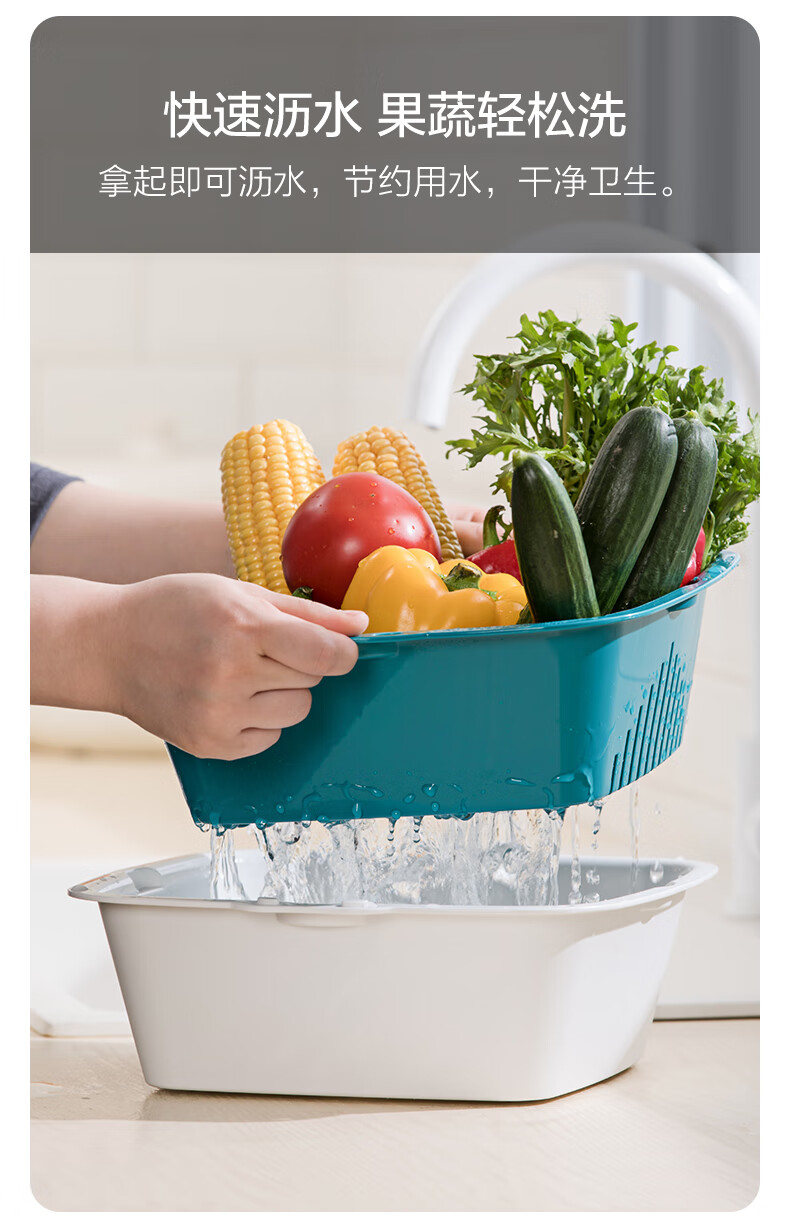 Camellia (CHAHUA) double-layer drain basket plastic basin sieve one basin multi-purpose kitchen washing vegetable dripping multi-functional fruit and vegetable drain basin home blue large, medium and small 3-piece set