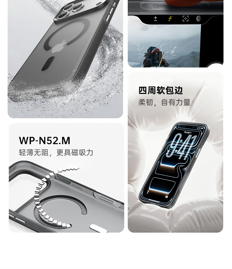 W&P is suitable for Apple 17ProMax mobile phone case iphone17promax frosted skin protective cover magnetic charging case all-inclusive anti-fall anti-fingerprint men's and women's matte black wp