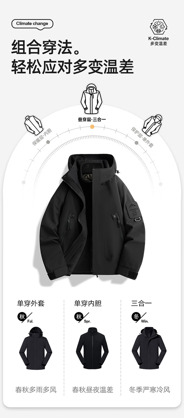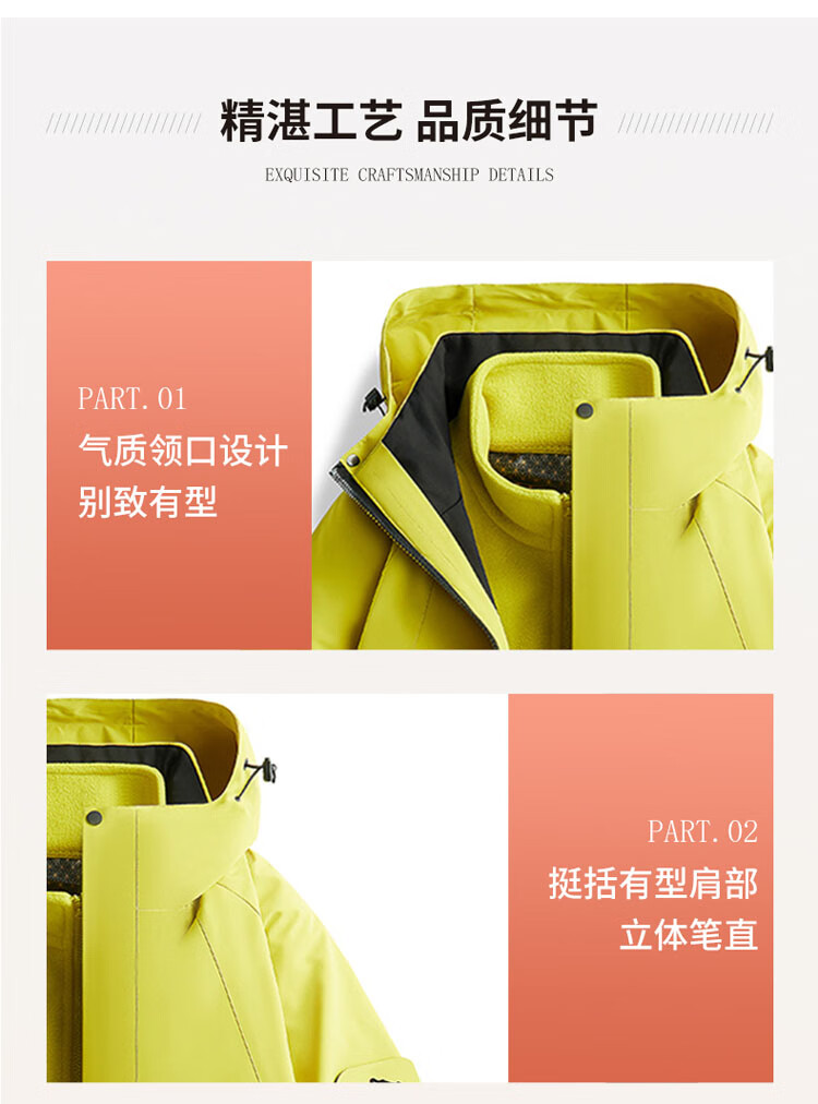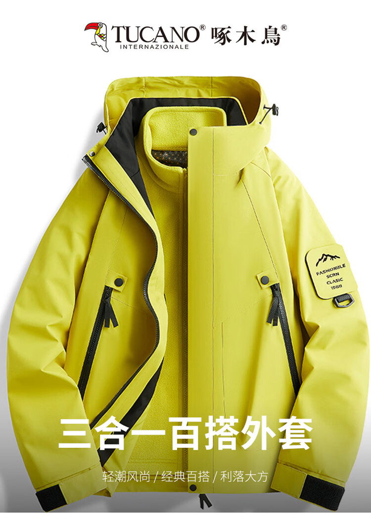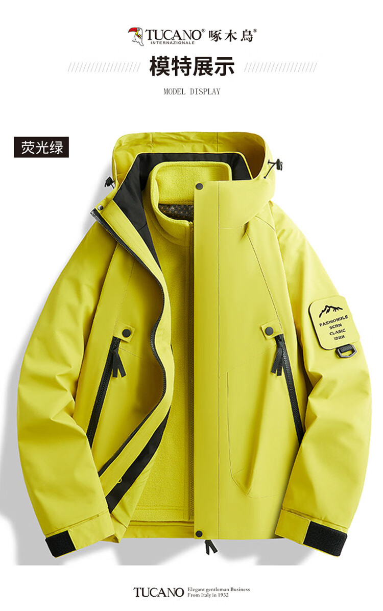 Woodpecker (TUCANO) men's and women's three-in-one jacket autumn and winter jacket men's outdoor casual windproof mountaineering clothing fluorescent green M