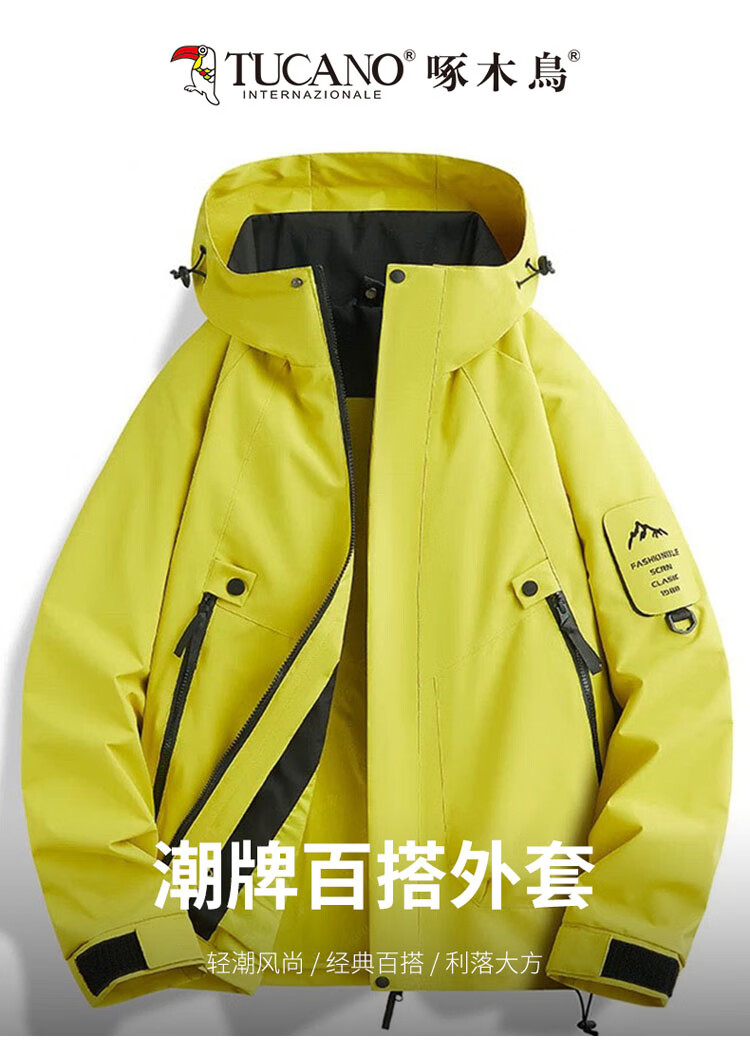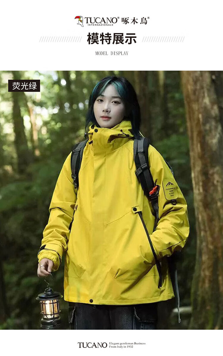 Woodpecker (TUCANO) Jacket for Men and Women, Autumn and Winter Jacket, Men's Loose Outdoor Casual Mountaineering Jacket, Fluorescent Green XL