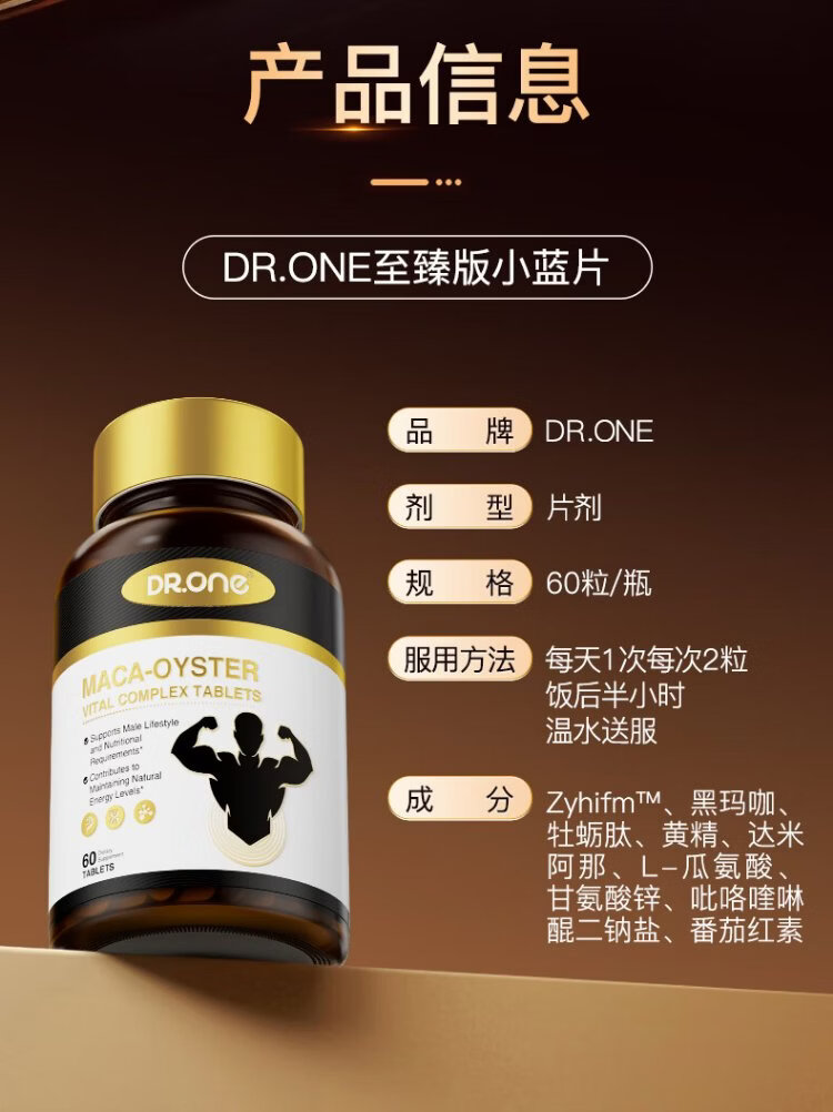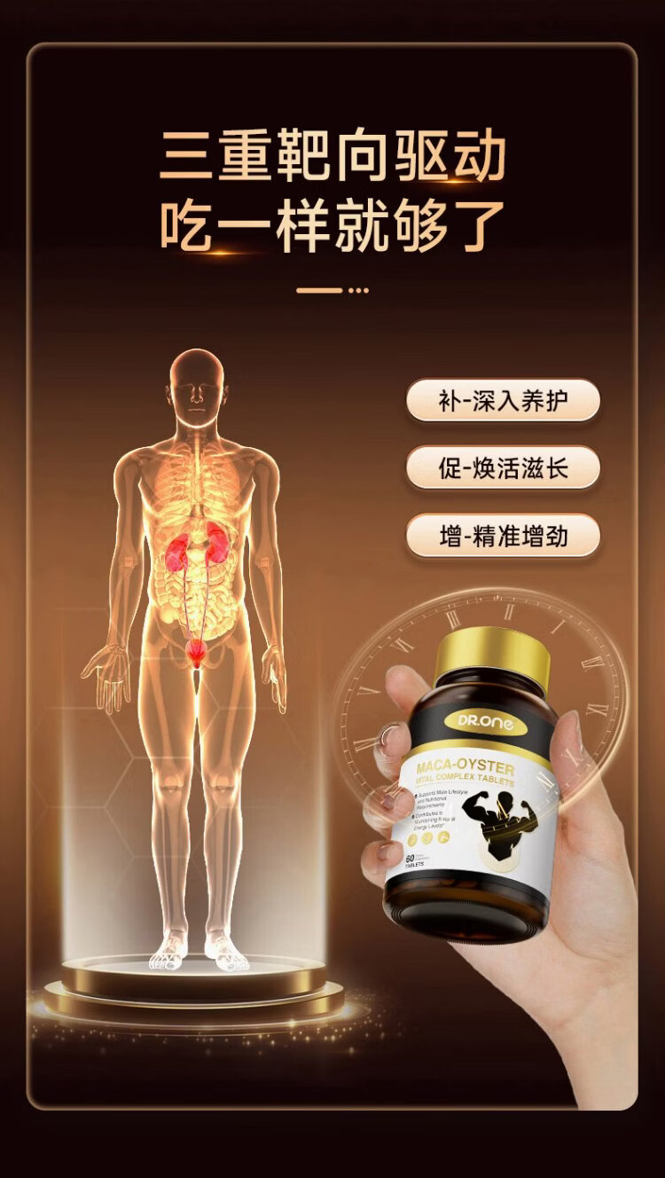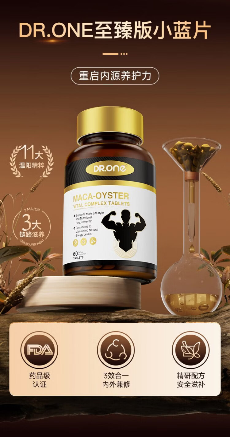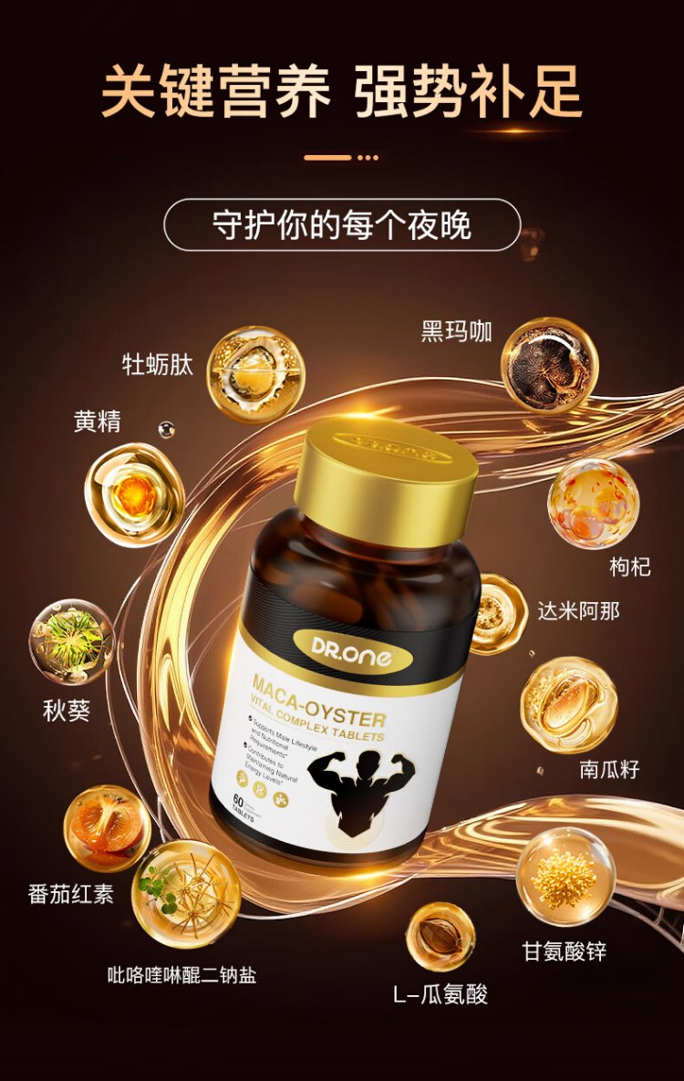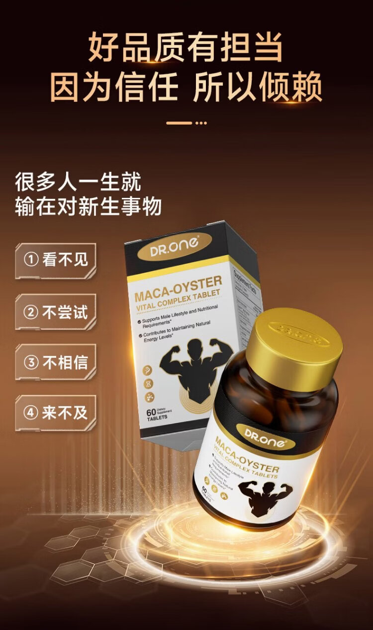DR.ONE Maca Oyster Essence Tablets Delayed Enlargement and Thickness Enlargement for Men tonify Kidneys and Strengthen Erections, Long-Lasting Non-Ejaculation, Health-Care Testosterone Booster