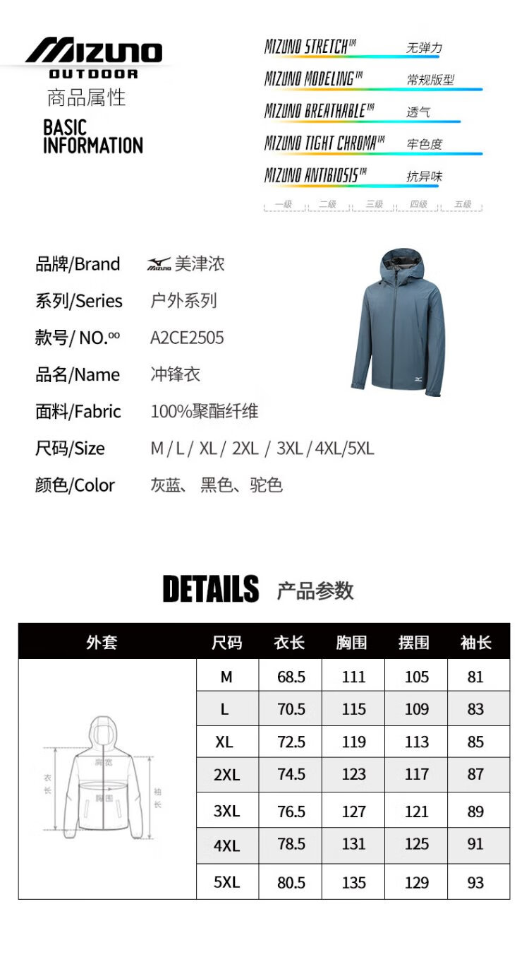 Mizuno outdoor casual jacket men's versatile men's hooded windproof and waterproof spring and autumn jacket