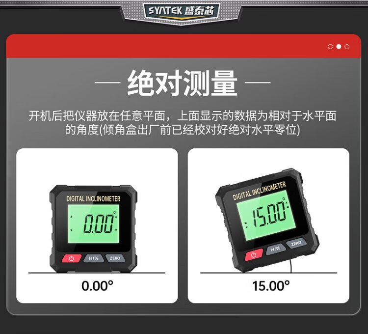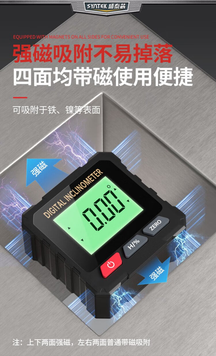 SYNTEK digital display level ruler high-precision digital display strong magnetic angle measuring instrument electronic slope ruler mini small level ruler