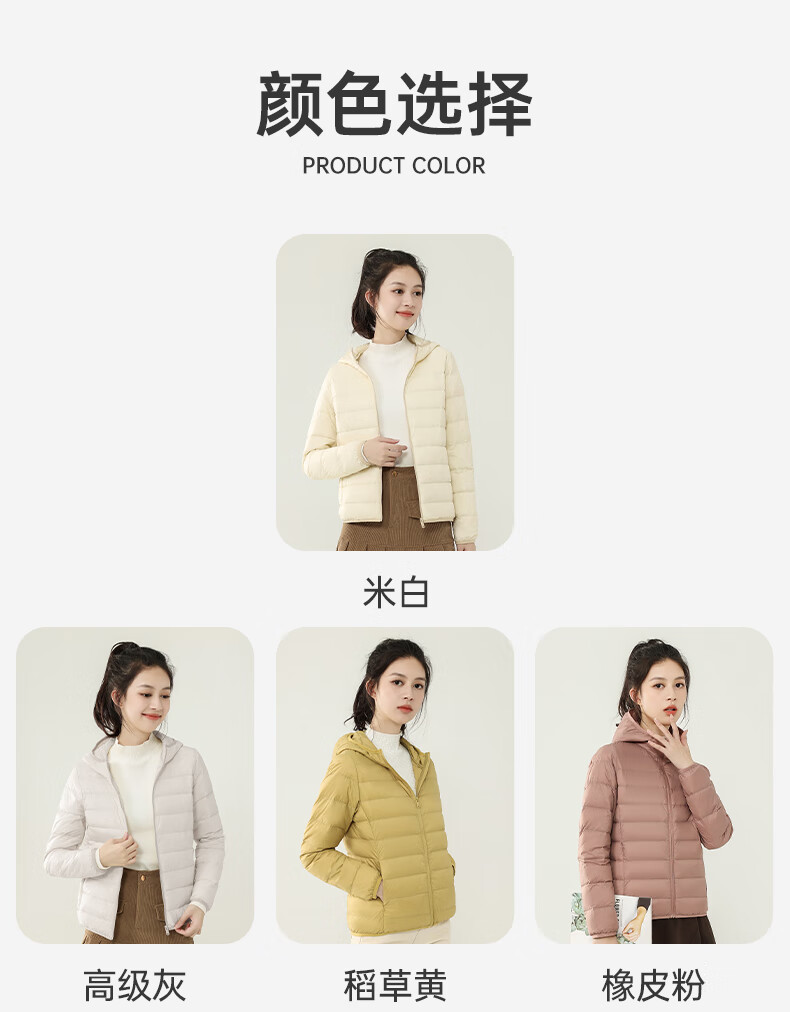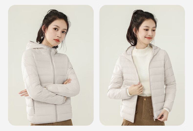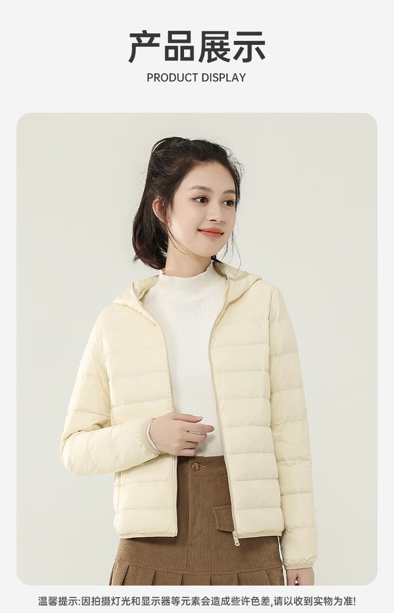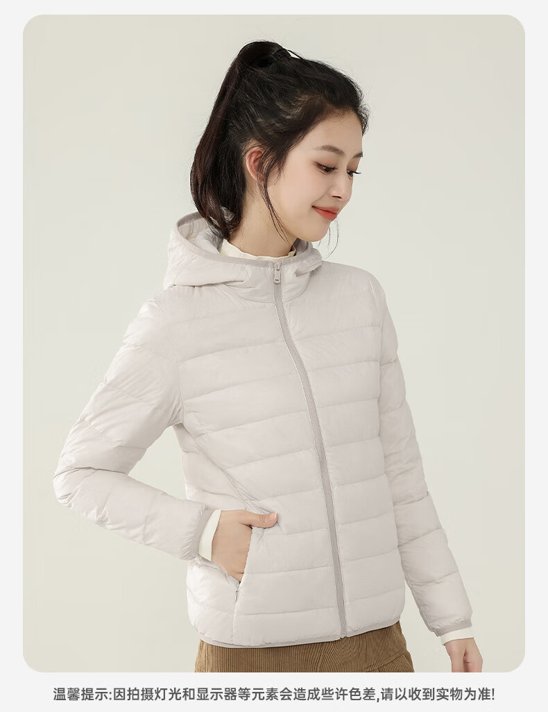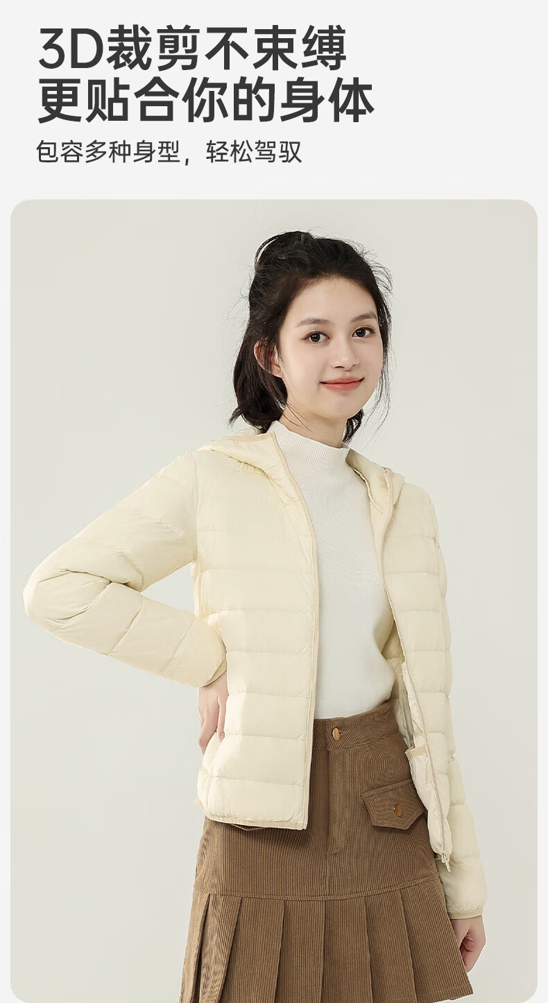 Flying in the Snow Short Thin Down Jacket Women's New Thin Hooded Warm Casual Fashionable Versatile Jacket Off-White L