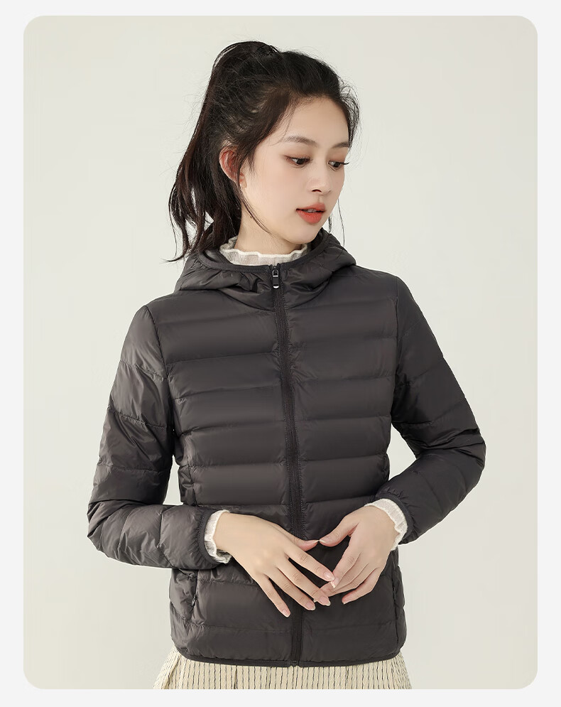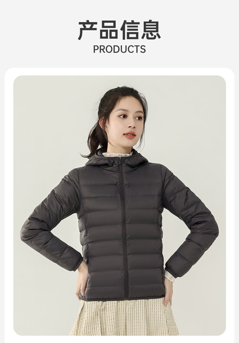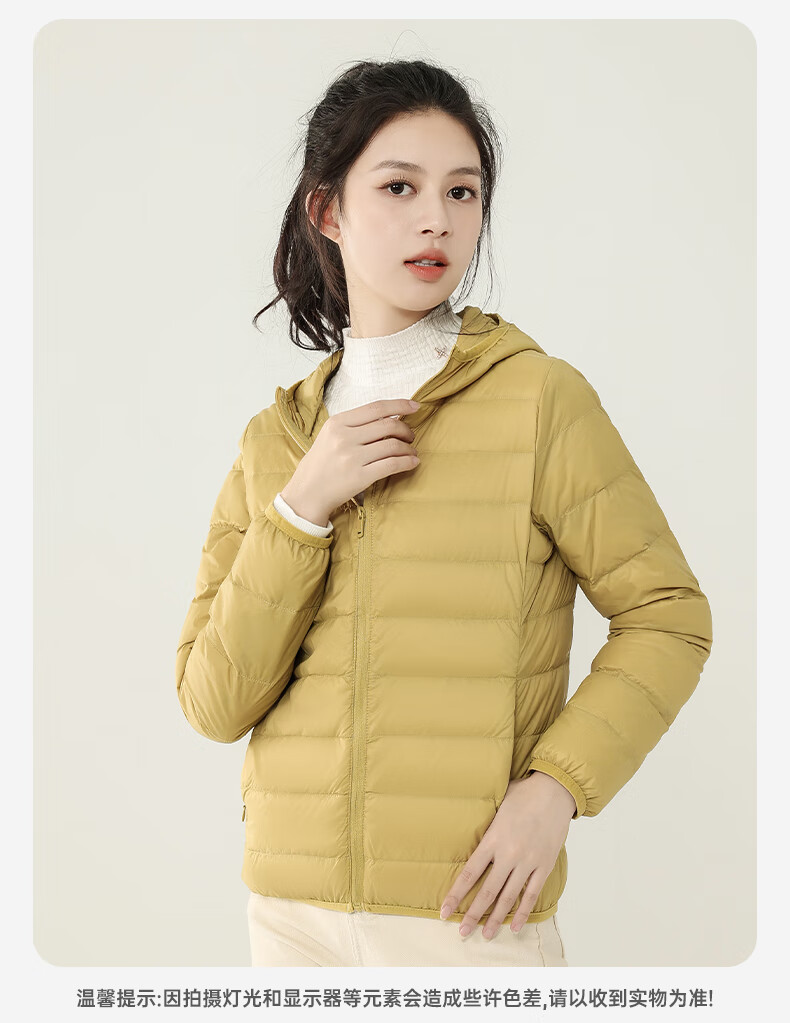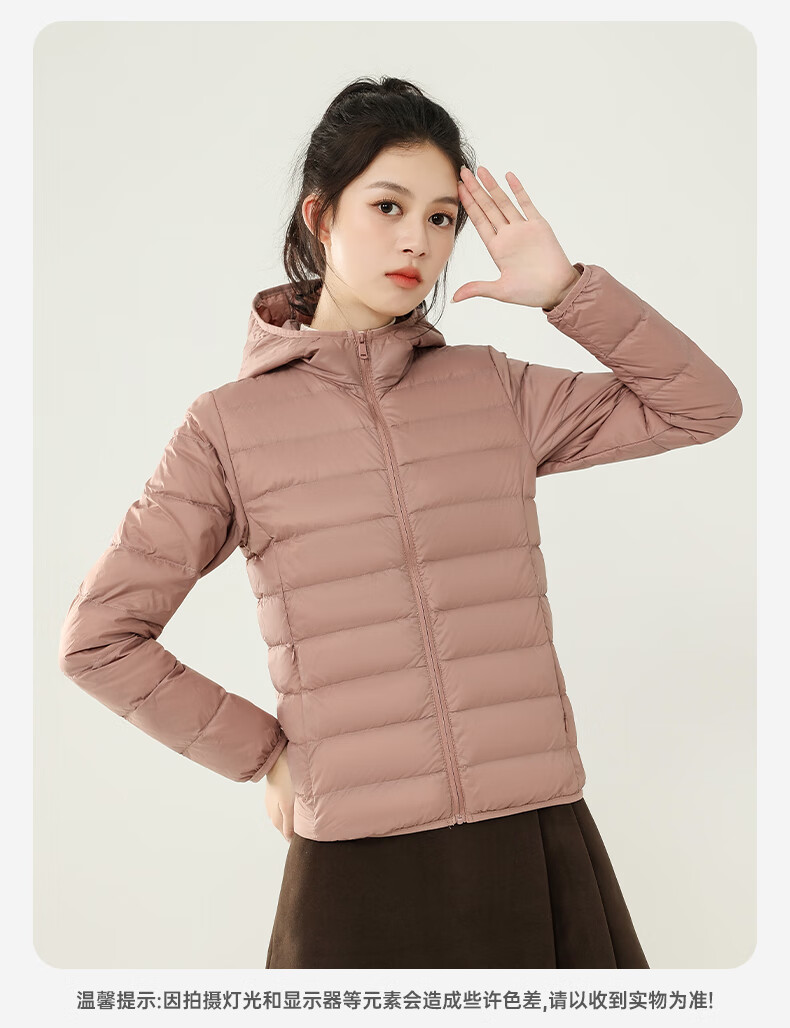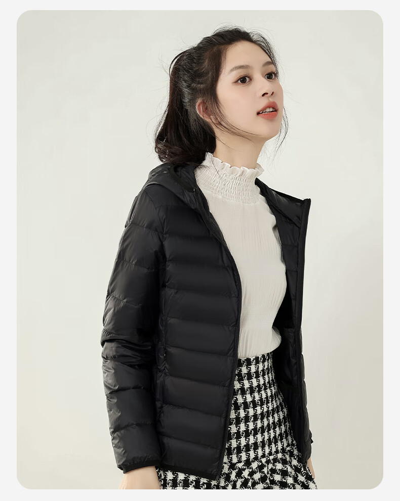 Flying in the Snow Short Thin Down Jacket Women's New Thin Hooded Warm Casual Fashionable Versatile Jacket Off-White L