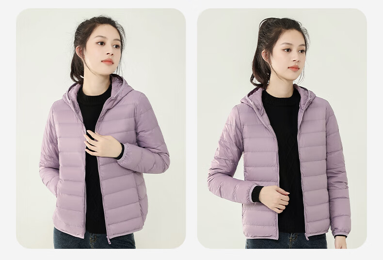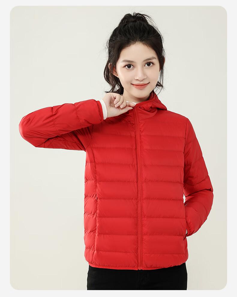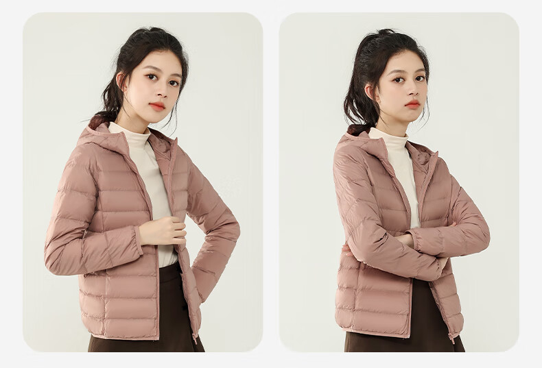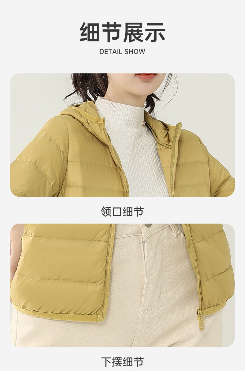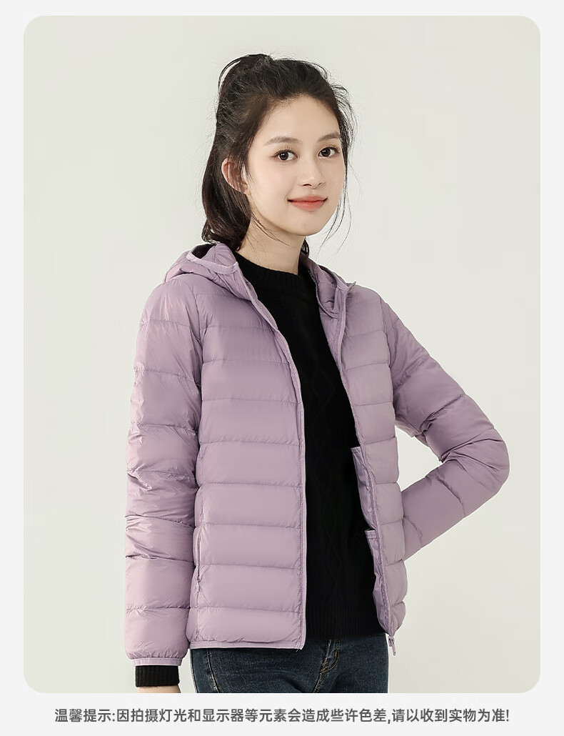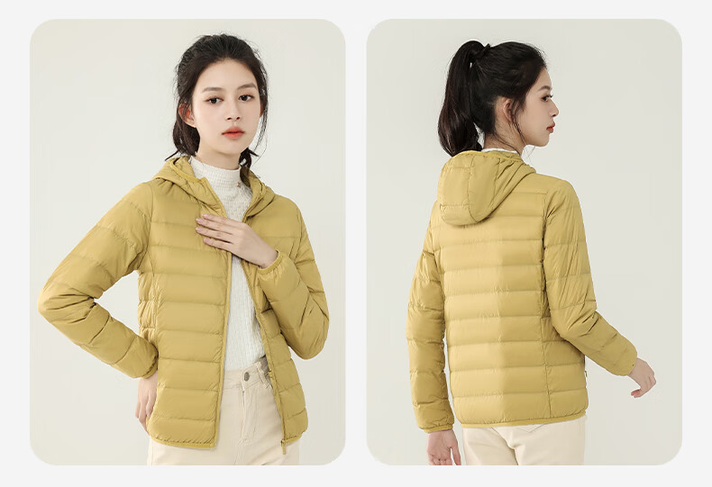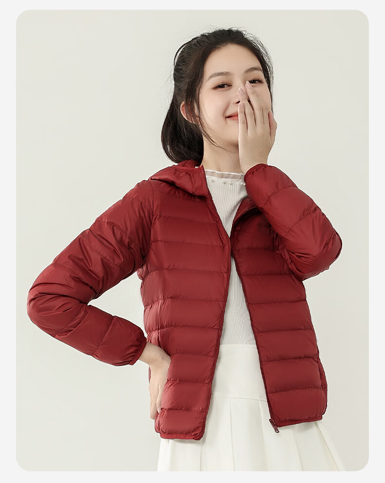 Flying in the Snow Short Thin Down Jacket Women's New Thin Hooded Warm Casual Fashionable Versatile Jacket Off-White L