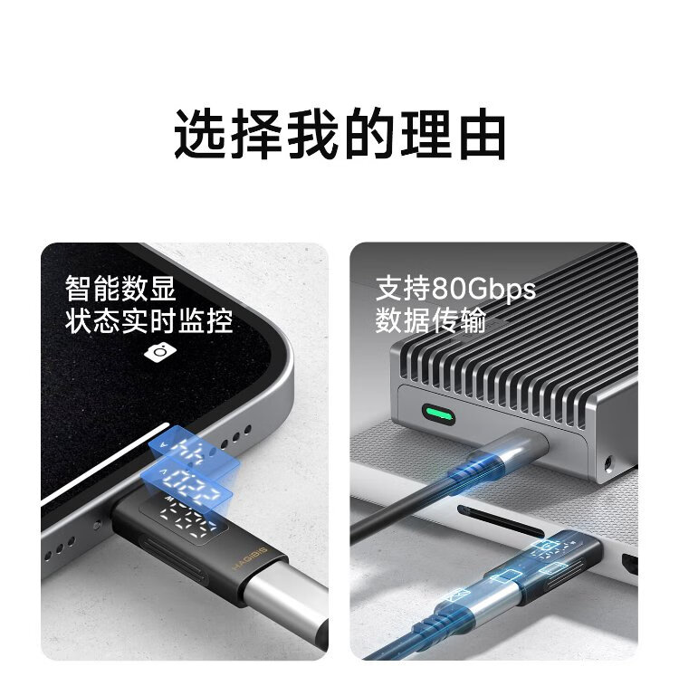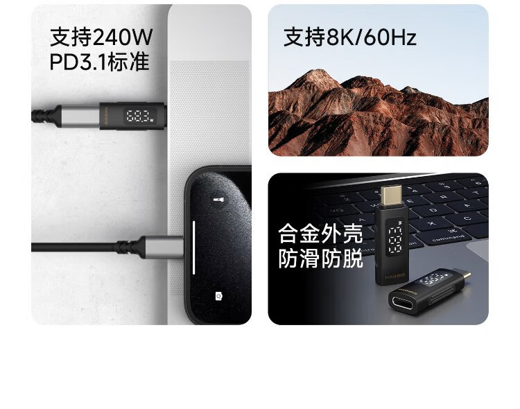 Haibis Type-C digital display adapter USB4 male to female charging power real-time display monitoring current and voltage detector mobile phone charger power detection 80Gbps transmission