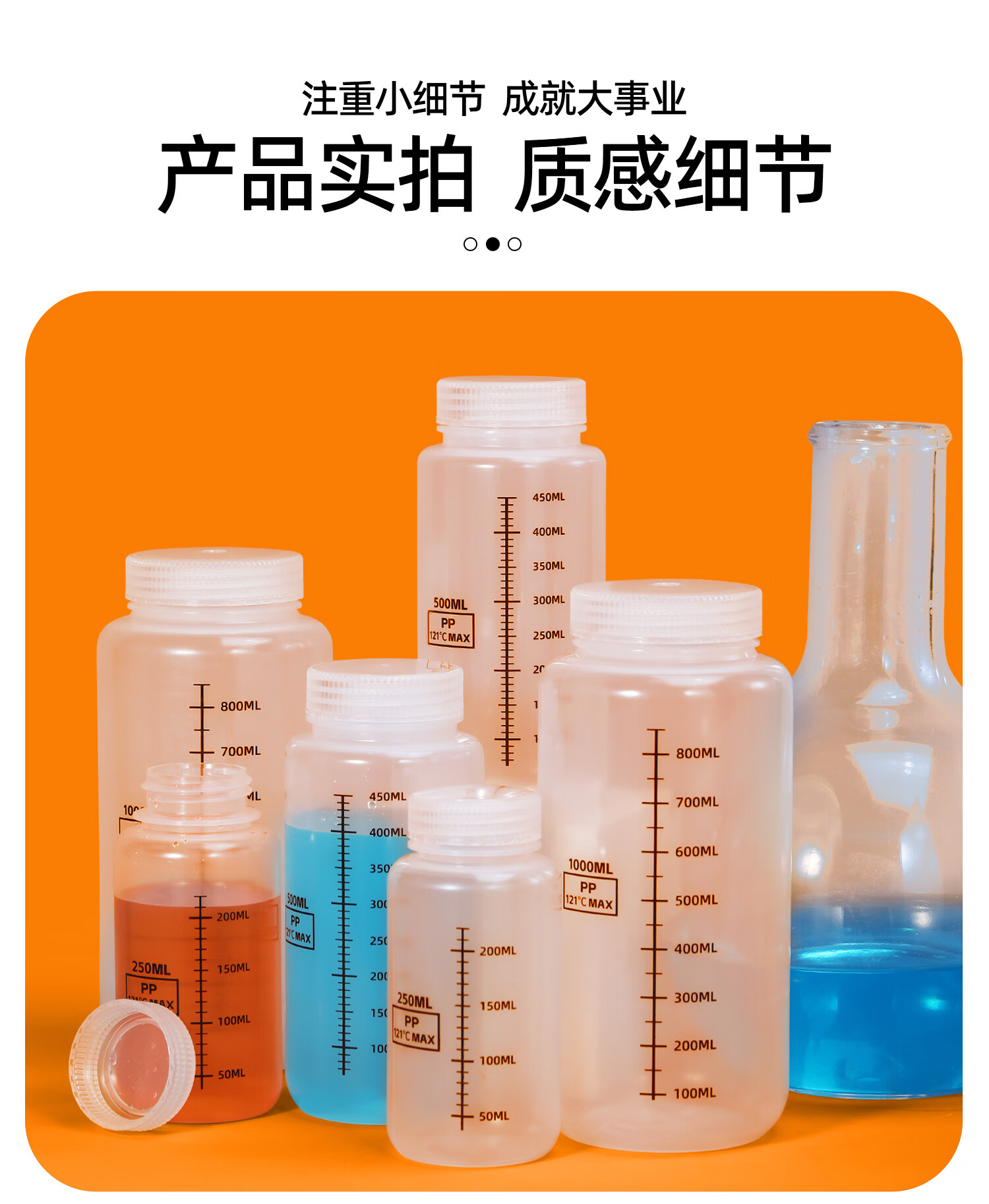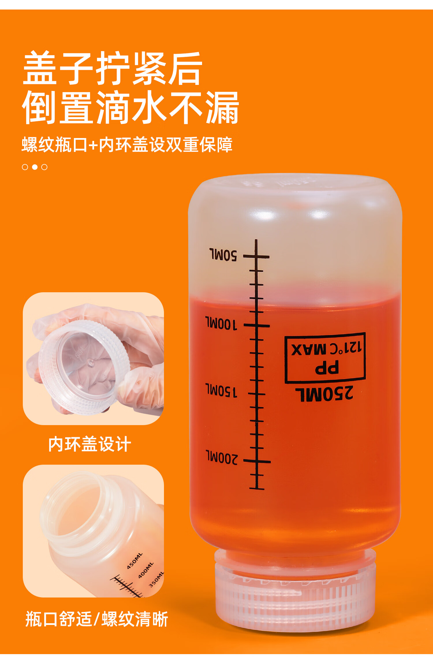 Metasequoia (2 pieces) 500ml transparent color thickened food grade wide mouth round bottle with scale acid and alkali resistant high temperature laboratory sampling sealed bottle liquid dispensing bottle (PP material)