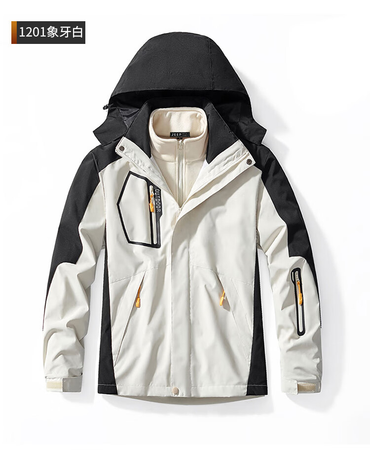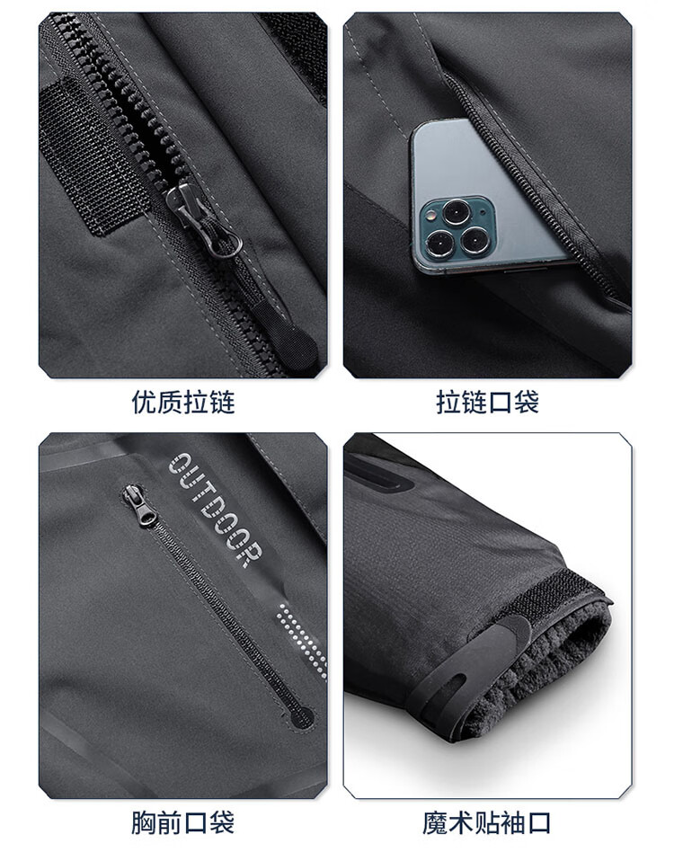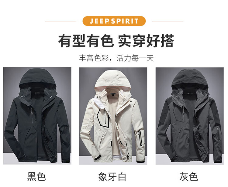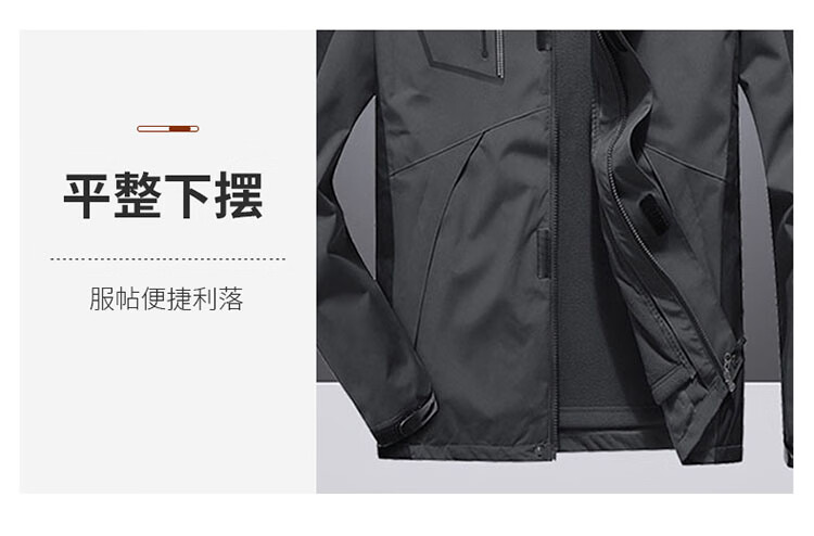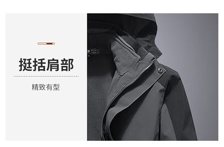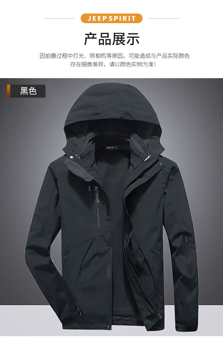 JEEP SPIRIT Jeep Jacket Men's Jacket Autumn and Winter Three-in-One Removable Thickened Windproof Mountaineering Jacket Gray 2XL