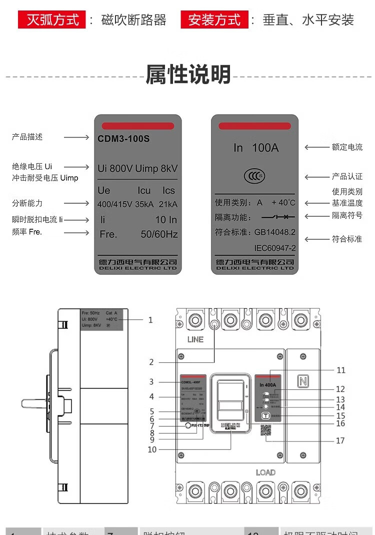Delixi Electric Molded Case Circuit Breaker CDM3S-63C/2300 63A