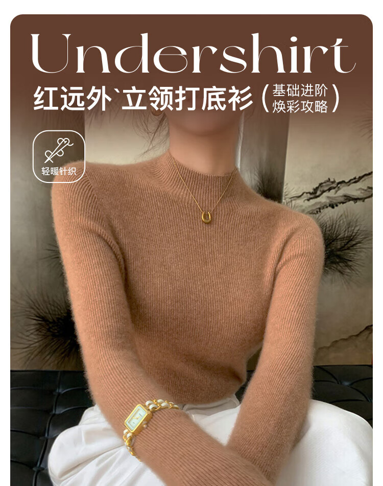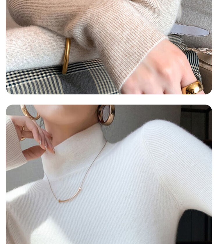 Odyfen wool knitted bottoming shirt for women with half-turtleneck sweater, slim long-sleeved, mid-collar, wearable top, autumn and winter black